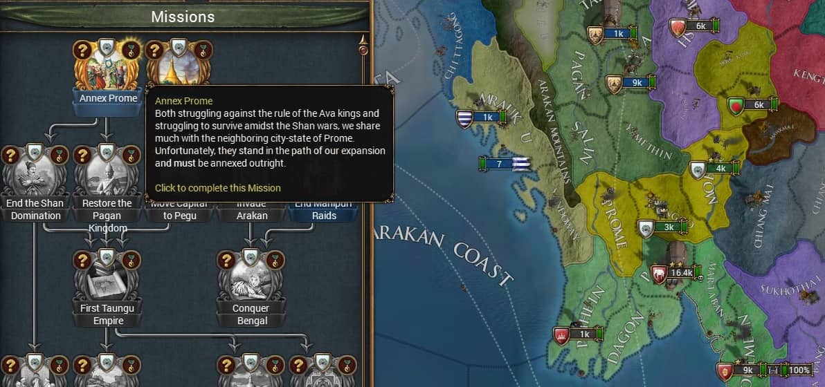 1448年、Prome及びMon Paiの重要拠点、Arakanの属国化で一つ目のミッションを達成。
