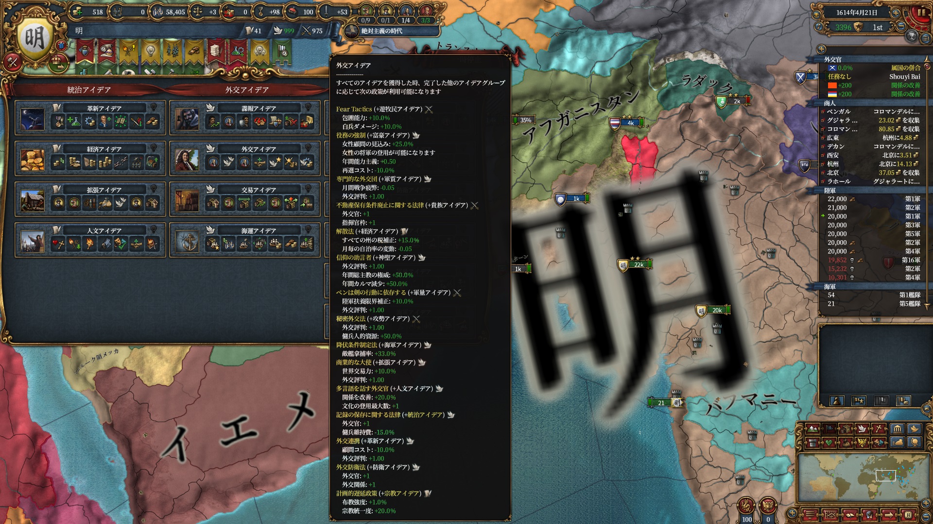軍量と悩んだのですが過酷な処置を連打するだろうと思い先に外交アイデアに向かいました。