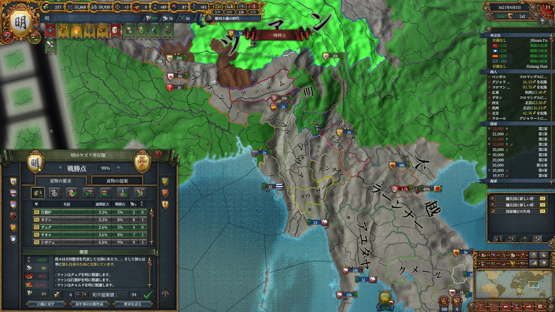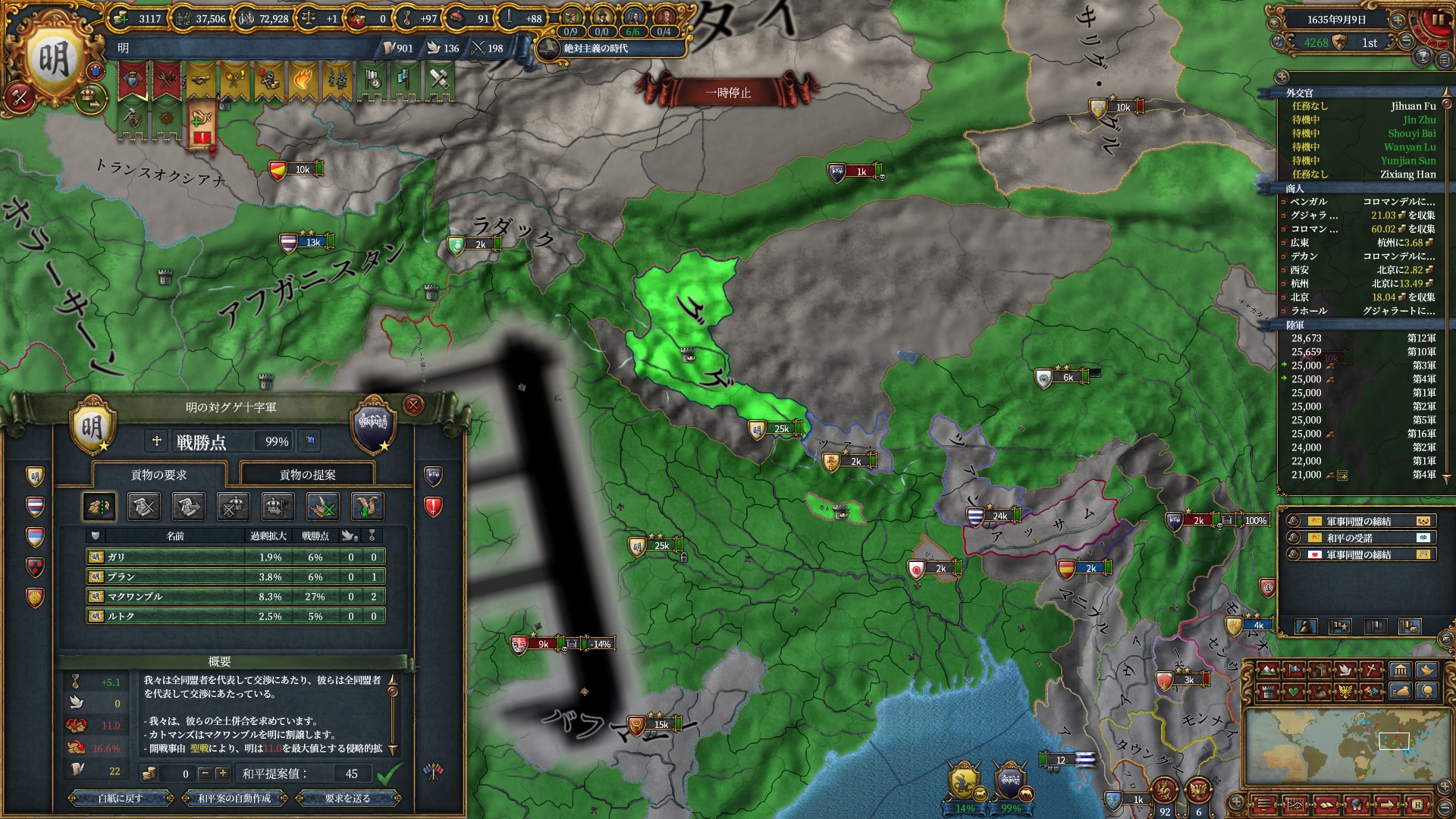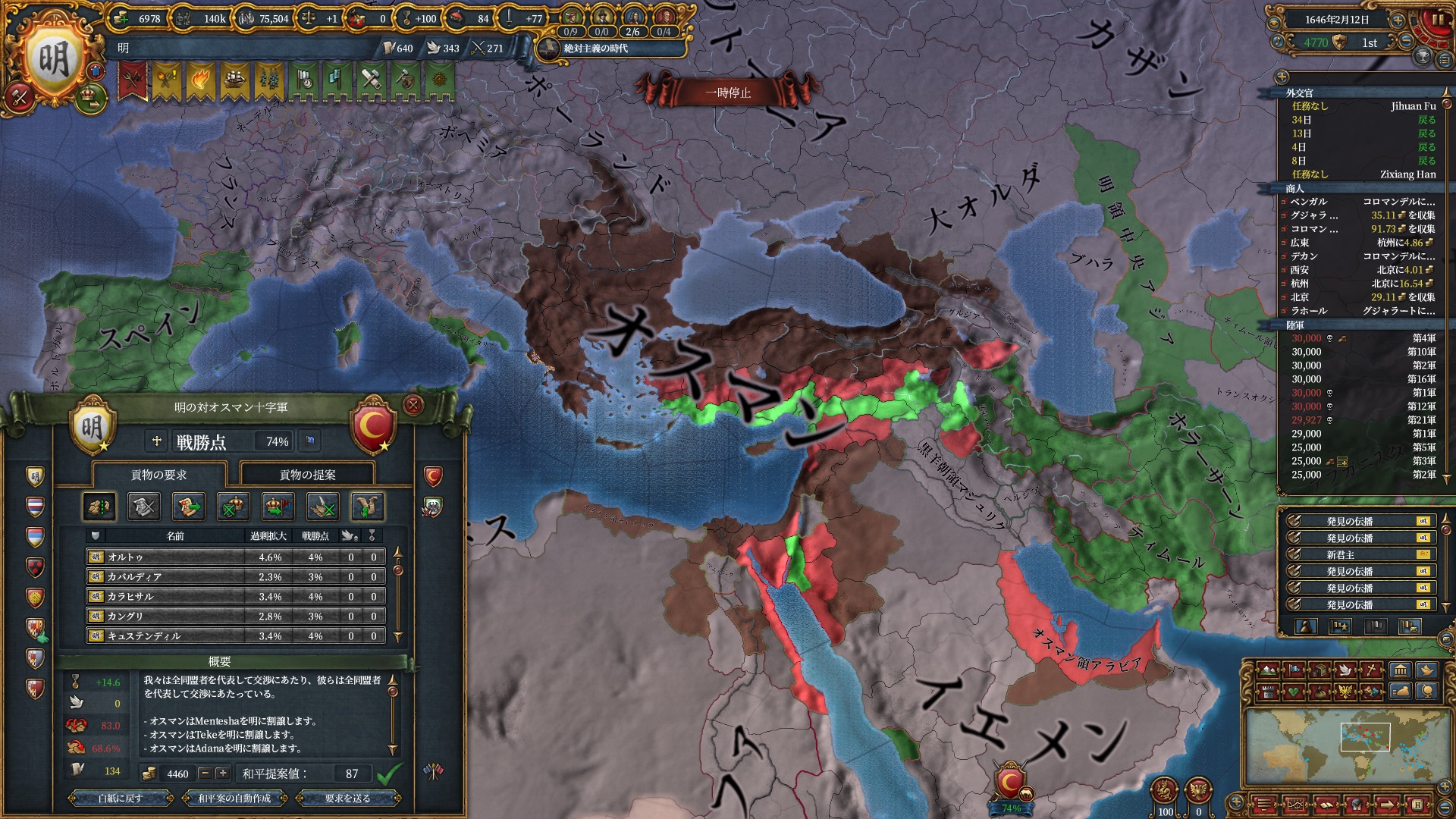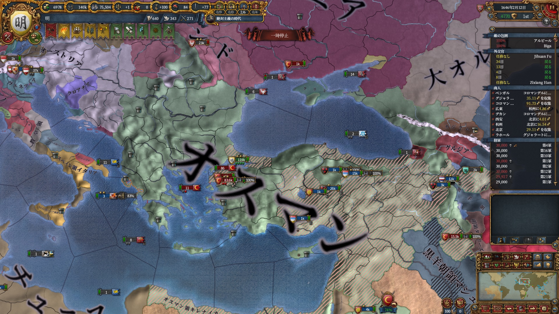 見返してみるとCoTの割譲も緩く内政力的にはまだまだ健在ですねオスマン。何故金を毟ってしまったのか