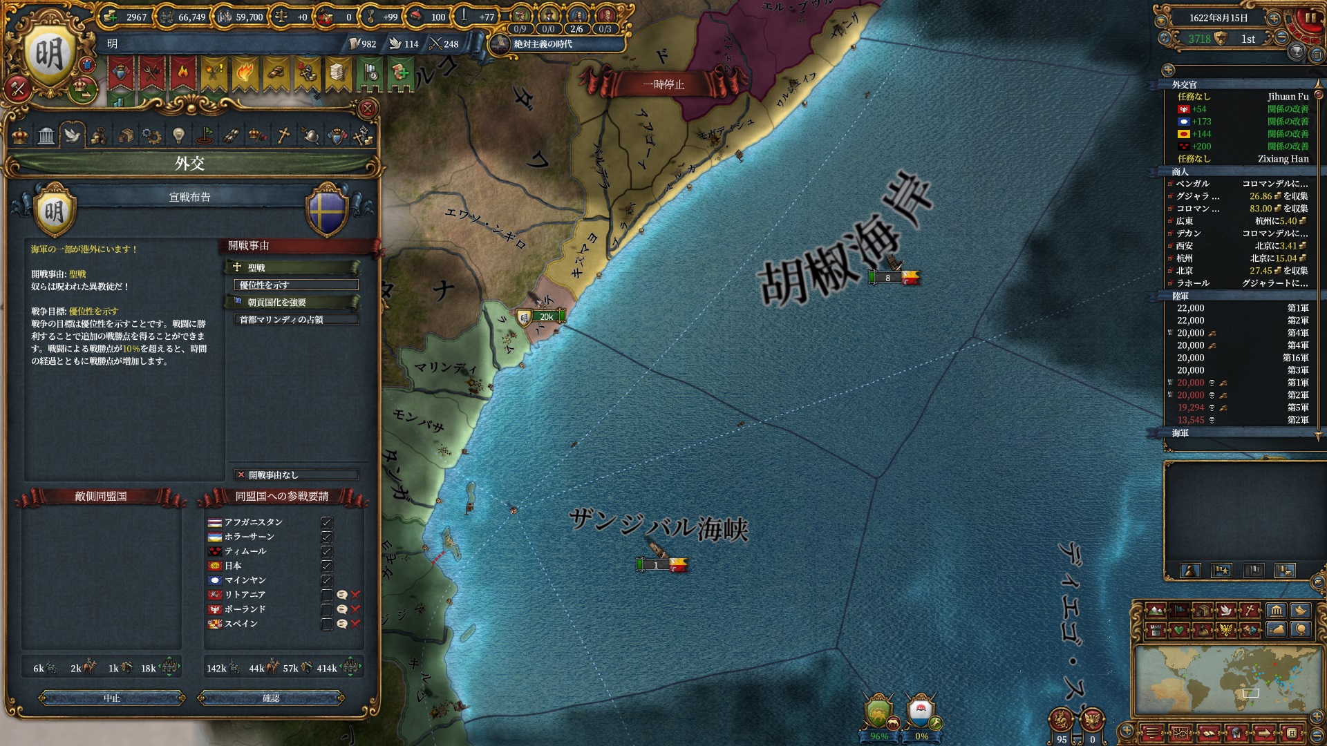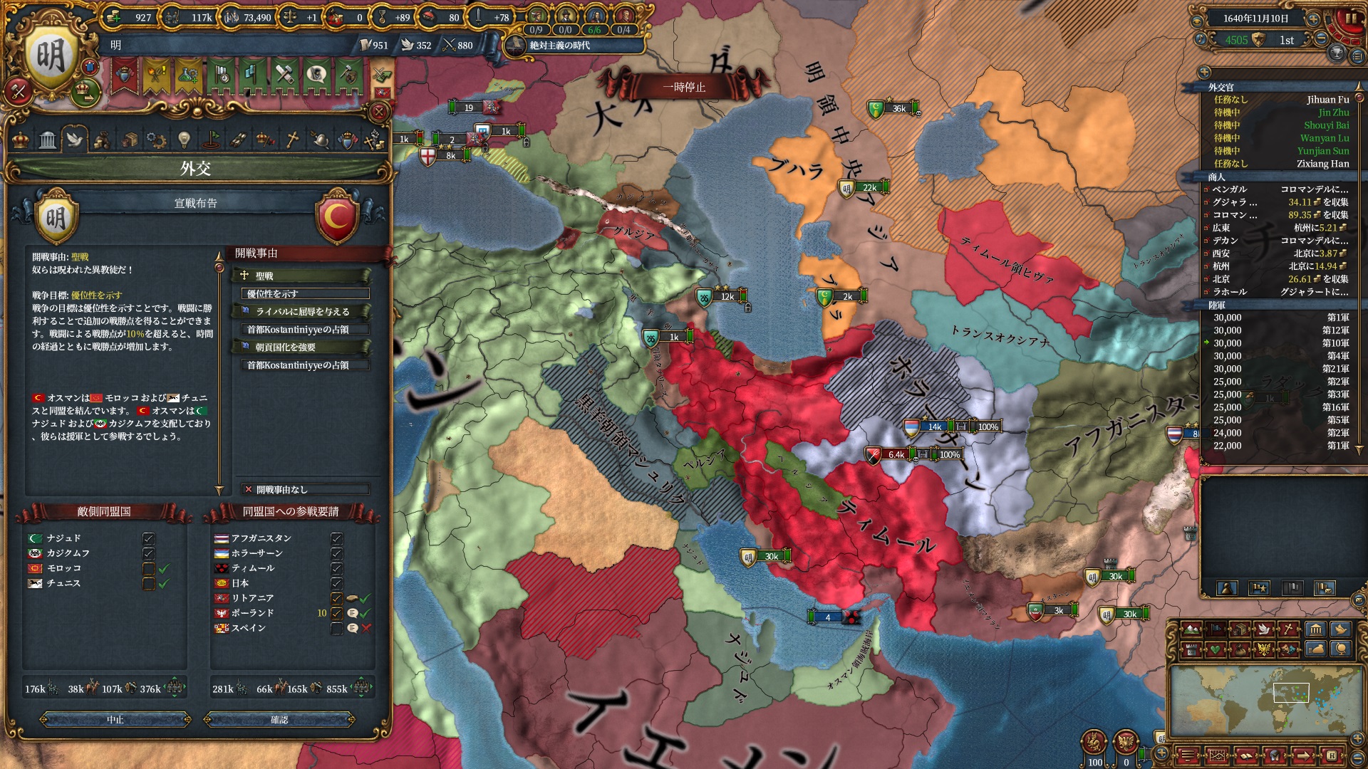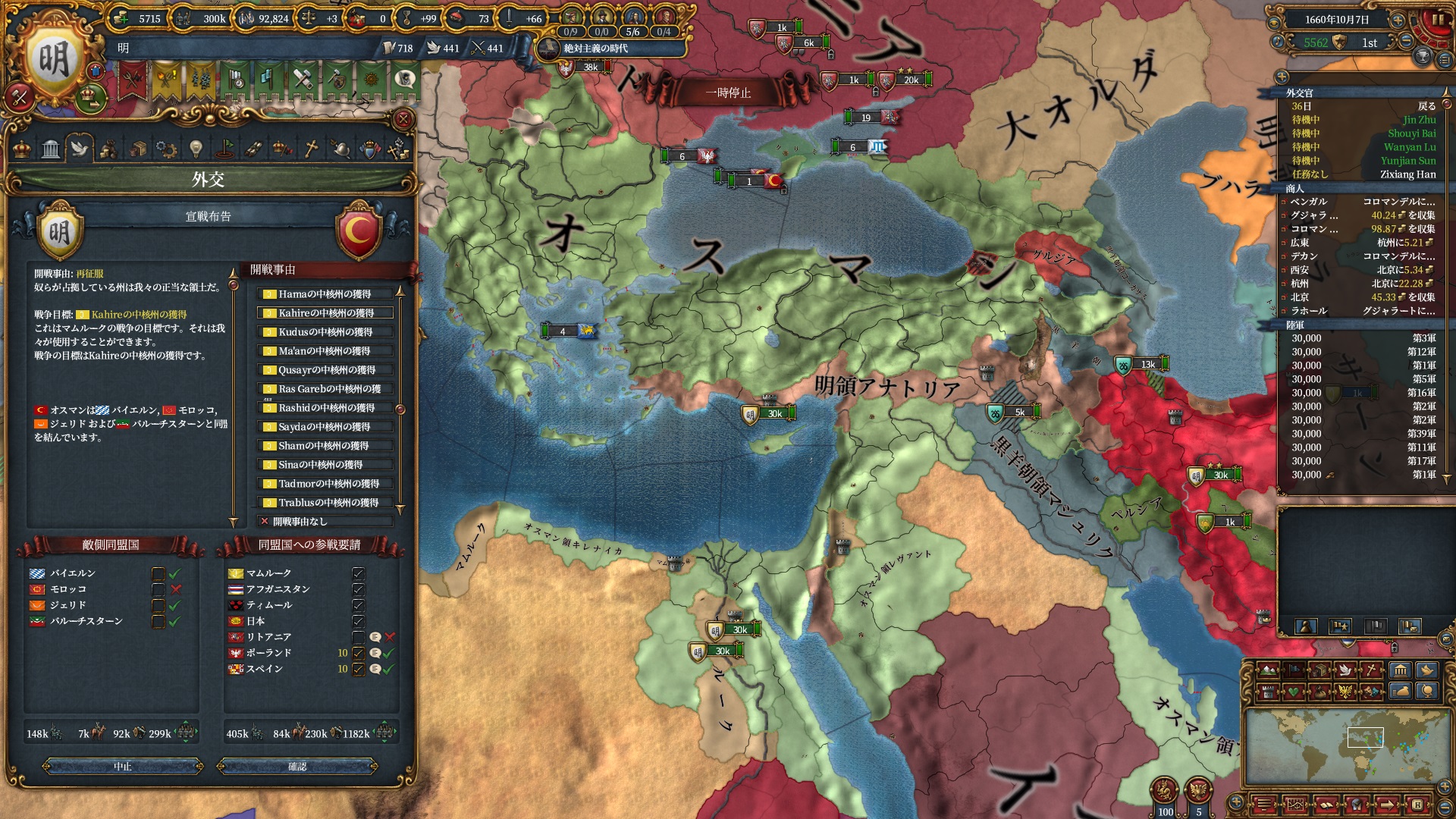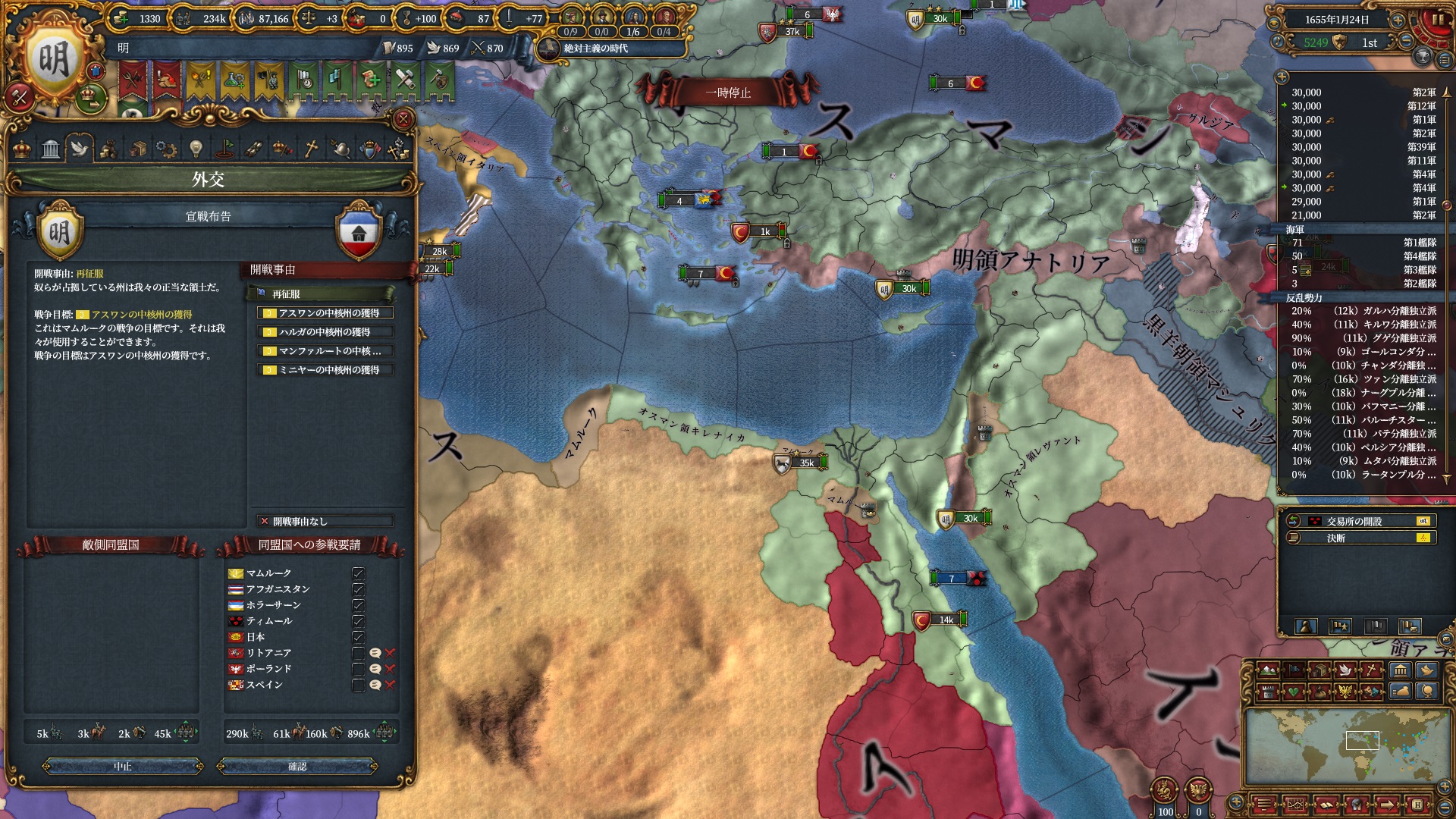 ラスボス候補は国力が圧倒的なオスマン、植民地が多く本国のパワーも欧州上位で何より上陸が難しいイギリスでほぼ確定となりました。