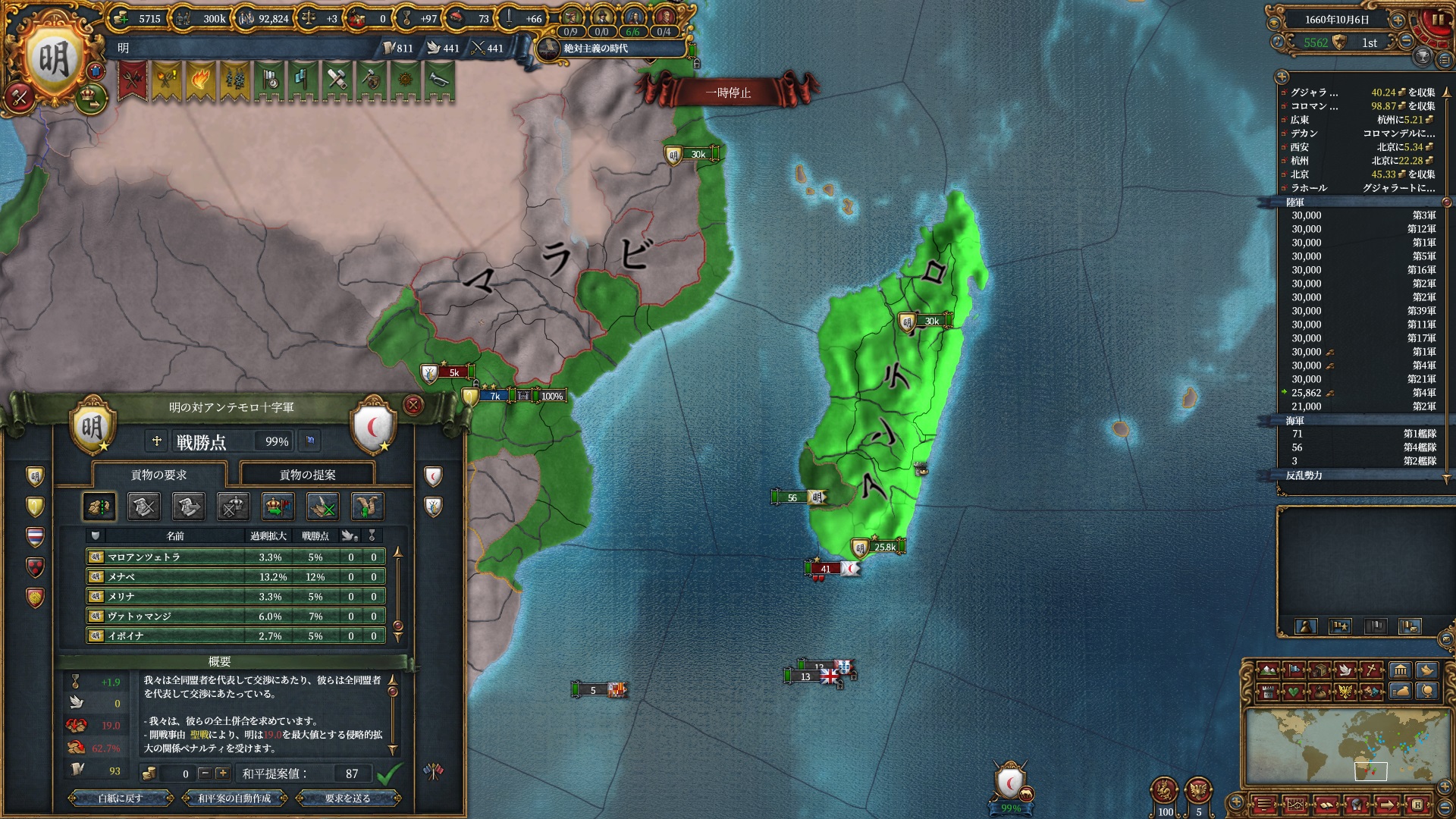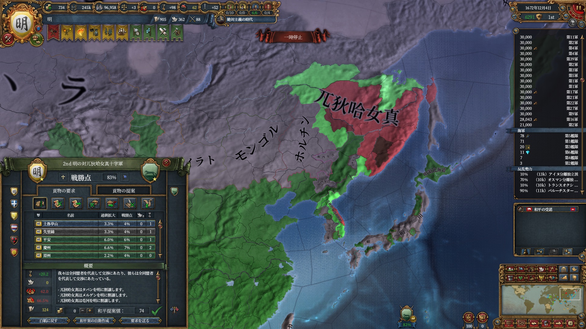 何とか首都を落とす所まではいきました。色々戻ってくる前にここで講和します。
