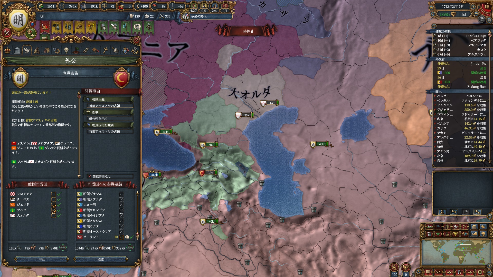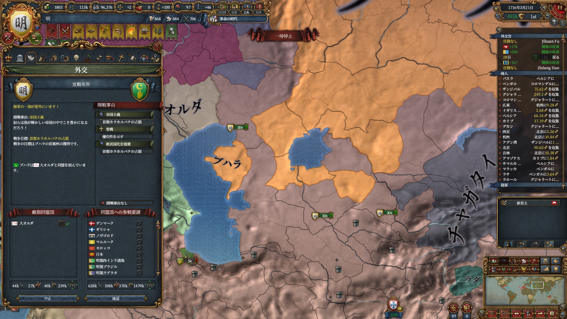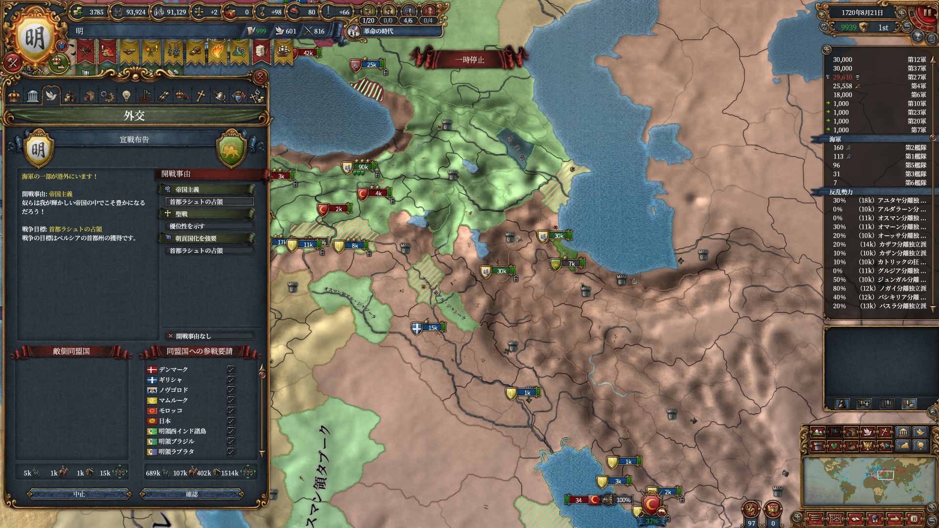 次はオスマンに行く予定なのでアチェと同盟しているラーンナーに仕掛け、同盟破棄させました。