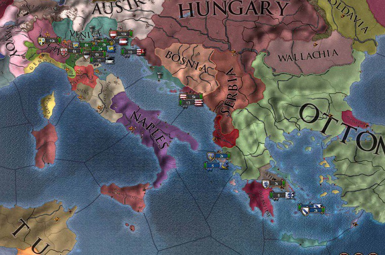 周りはイタリア諸国が埋めているし、北には神聖ローマ帝国も控えている