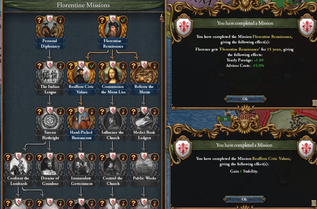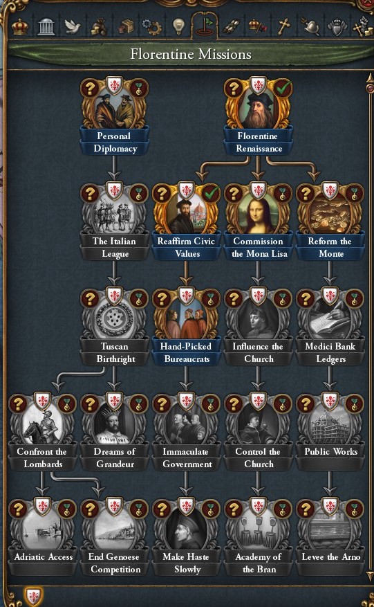 こちらがFlorenceのミッションツリー.コンパクトなのはItalyへの変態を前提としているためだろうか.