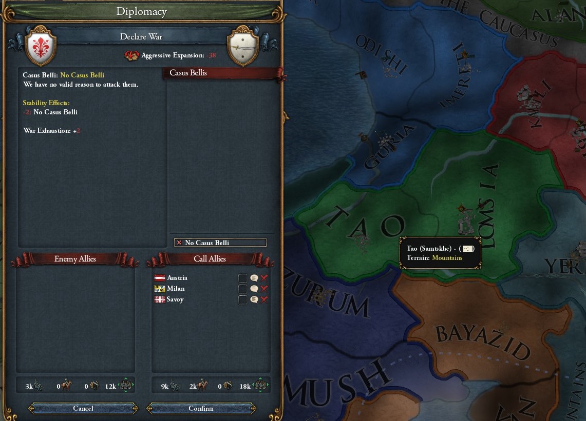 特に理由のない宣戦がSamtskheを襲う.なお,Samtskheはコーカサスの2プロビ国家である.
