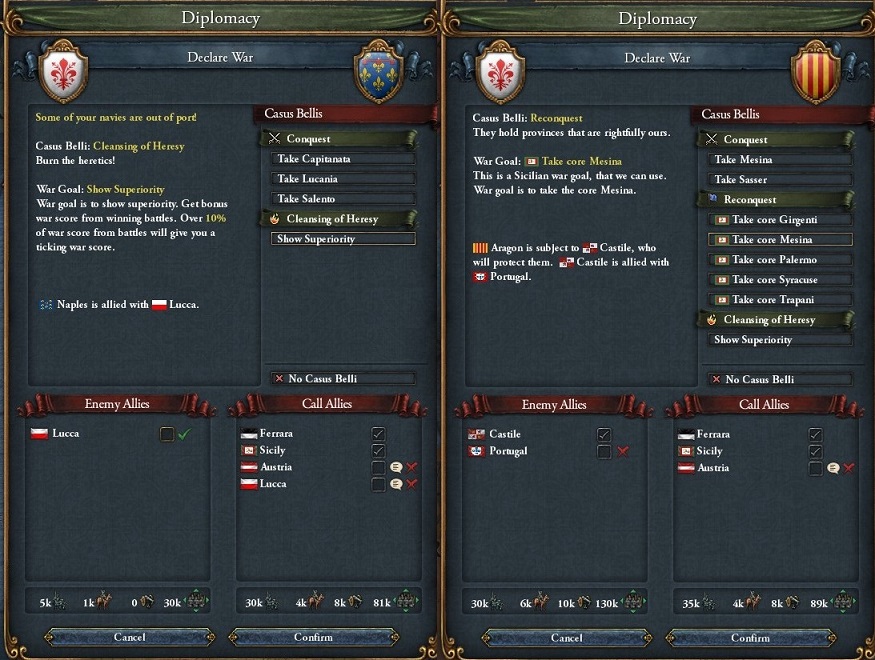 続けてCastile=AragonにもSicilyの再征服CBで宣戦.