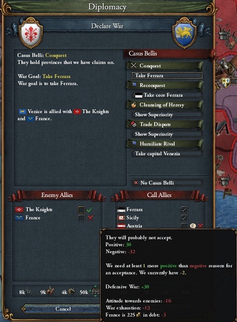 1519年,Veniceに宣戦.Franceは関係改善したら見逃してくれたので,あとでお礼参り(聖戦)に行こう.