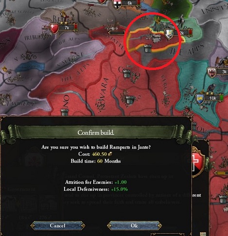 アルプスに要塞と城壁を建てて,さらに布告で防御を固める.Italy変態後はNIでさらに固くなる.