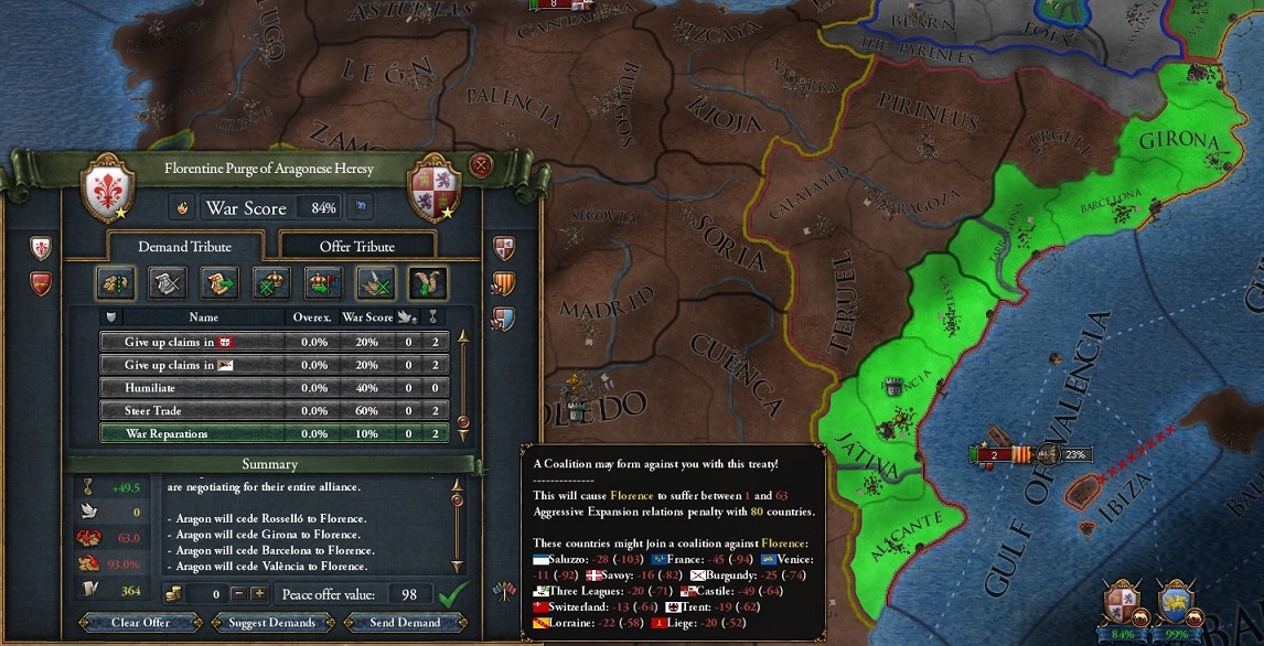 Florenceは西地中海の覇者になった.ここまで一度も包囲網を組まれていなかったと思う.