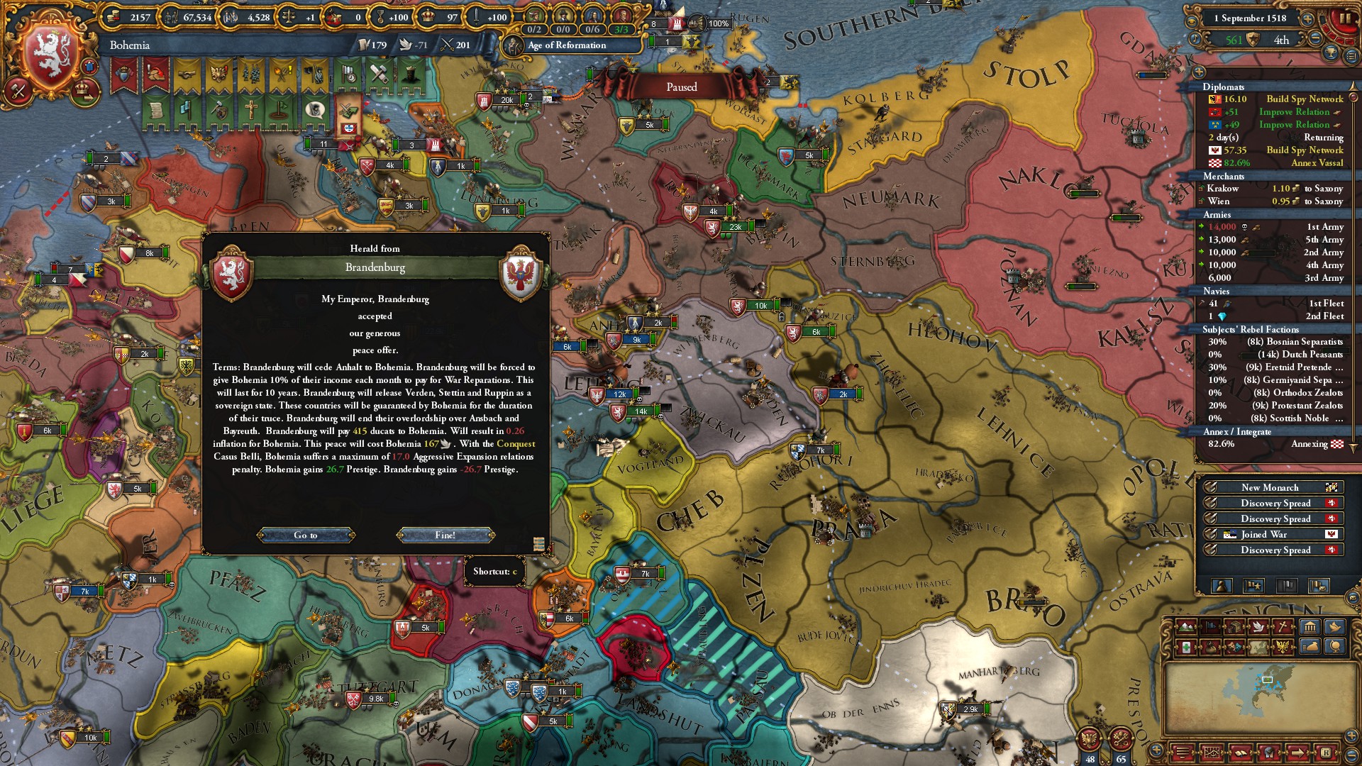 1534.10にブランデンブルクを属国化、だいぶ小さくなったのに結構AEが飛散しましたな。直ちにミッションで同君連合にしました。