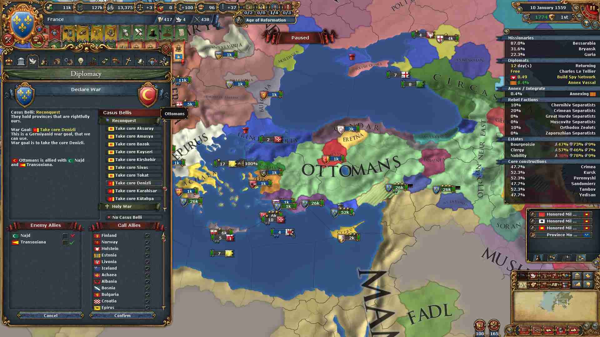 バルカン半島・アナトリアにコアがある国家を属国解放しました。