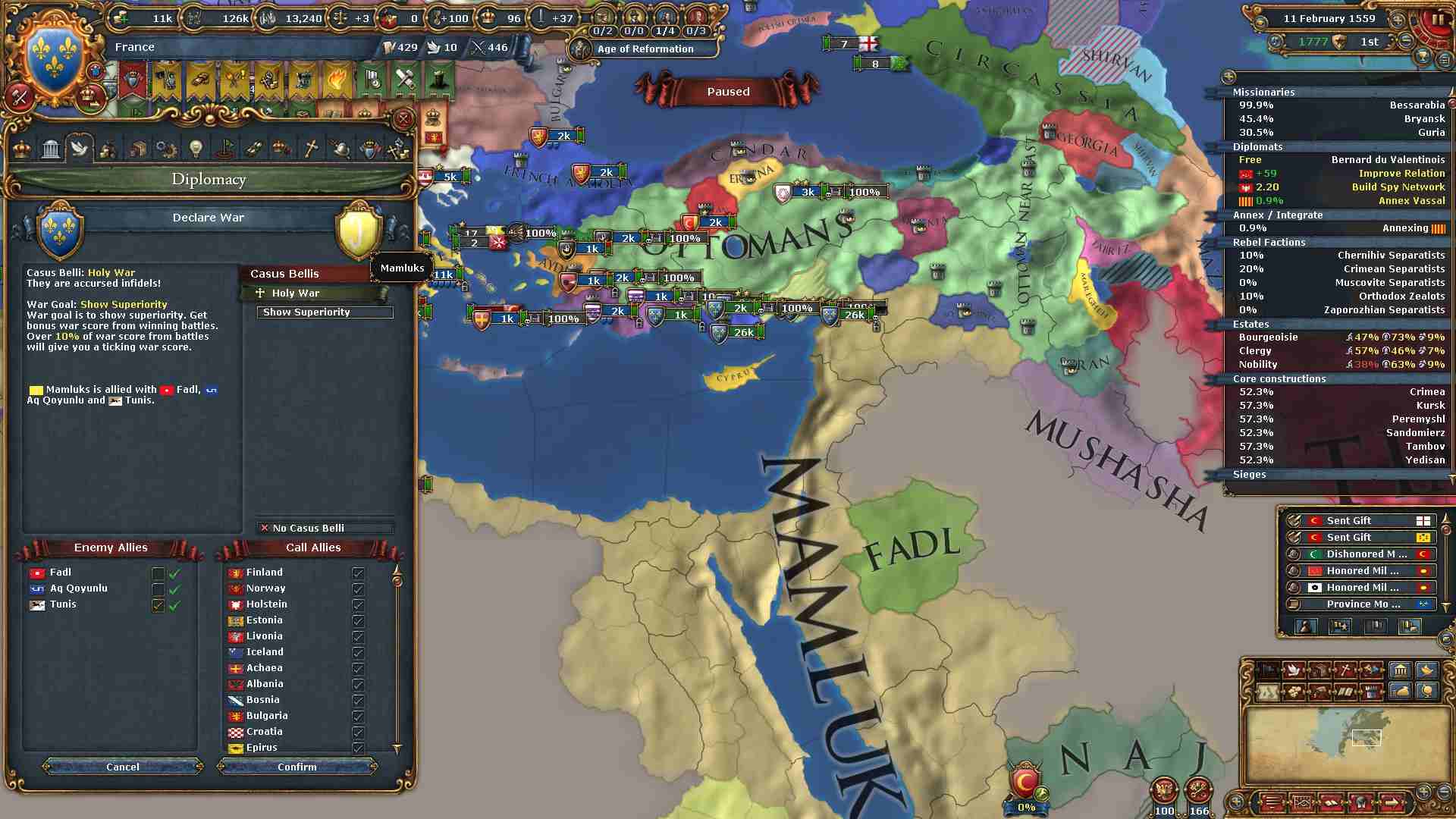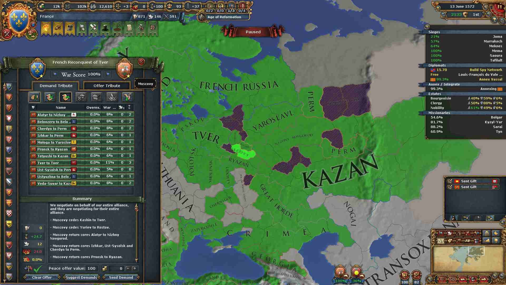 この後オスマンからも戦勝点MAXで属国の旧領を取り返しています。