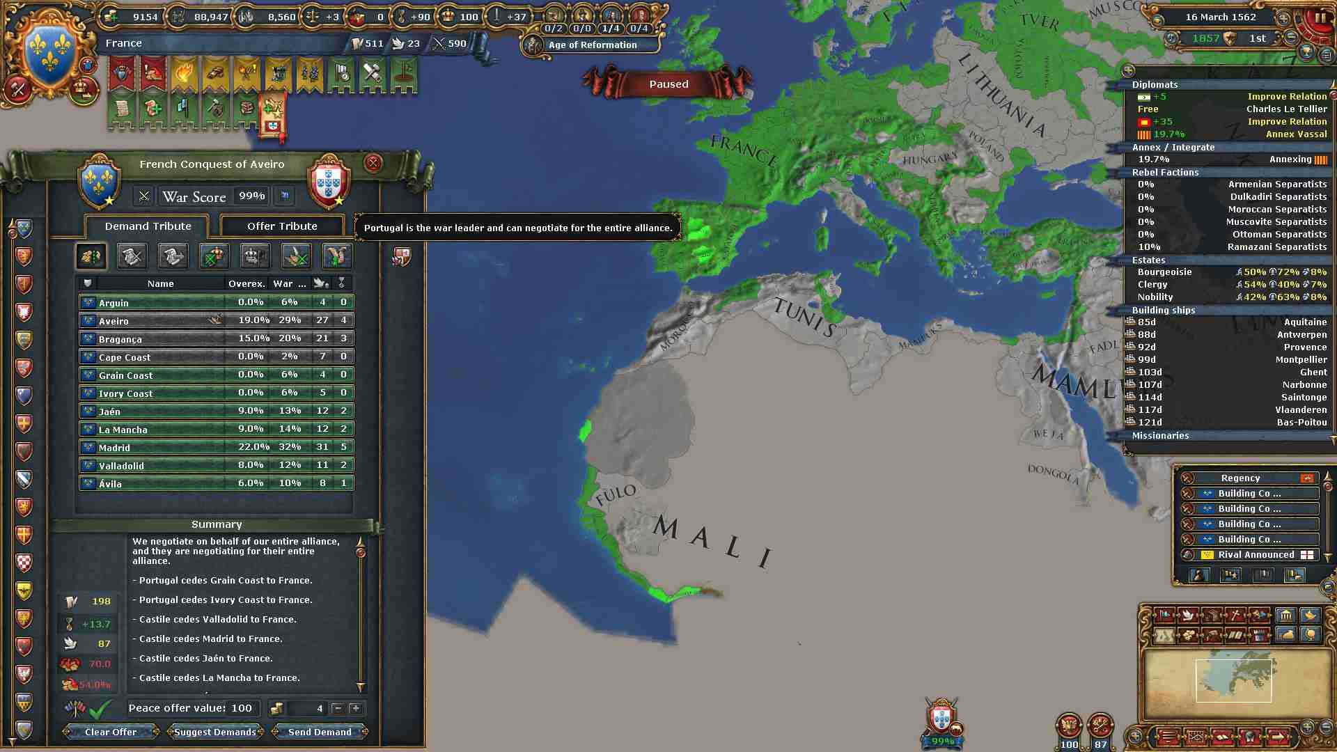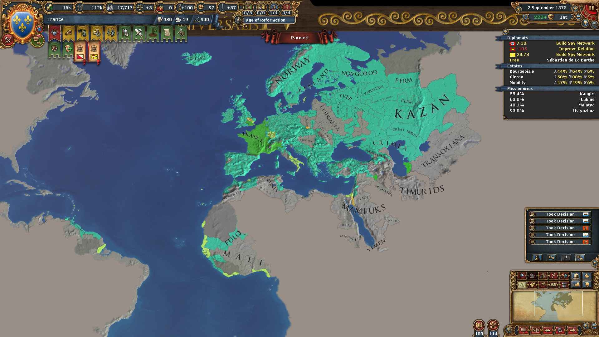 ここで序盤で作成した欧州の属国全ての外交併合が終わりました。