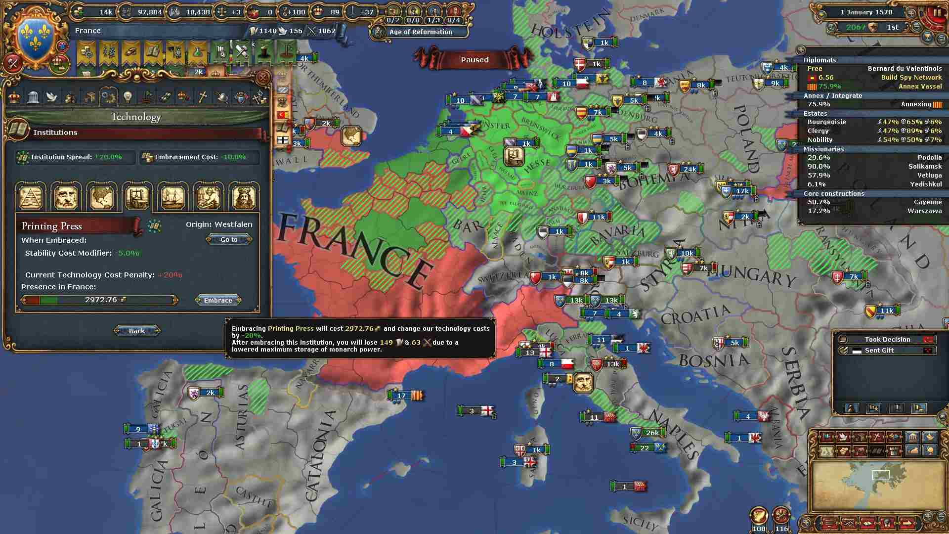 これにより自国の統治点の節約、改宗強度のペナルティーを無くします。
