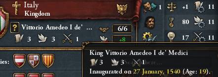 その名もヴィットーリオ・アメデオ・メディチ 奇しくも史実の初代イタリア王と同じ名前になりました