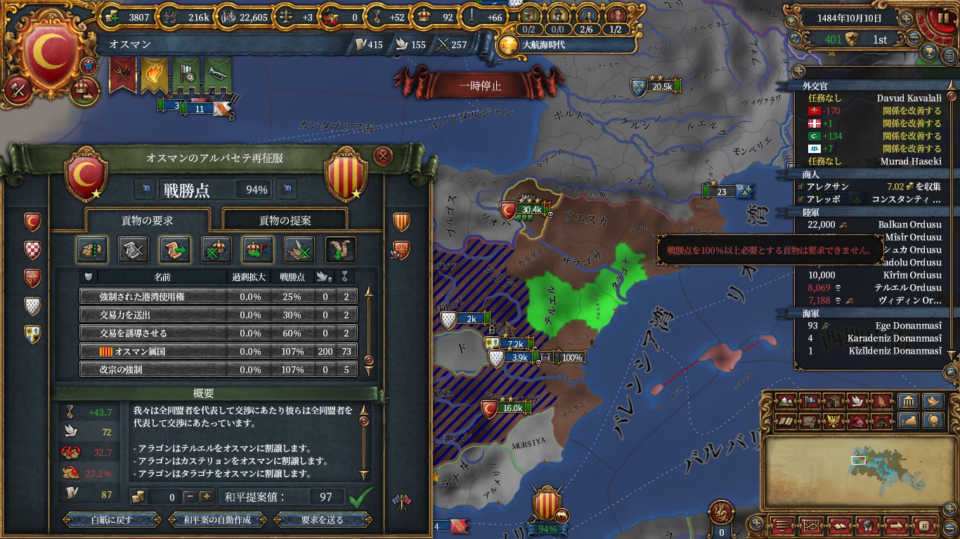 そういう意味では早期のカスティーリャ侵攻とポルトガルのエヤレト化は後半においての負担軽減が大きいと思います。