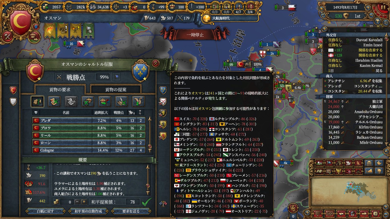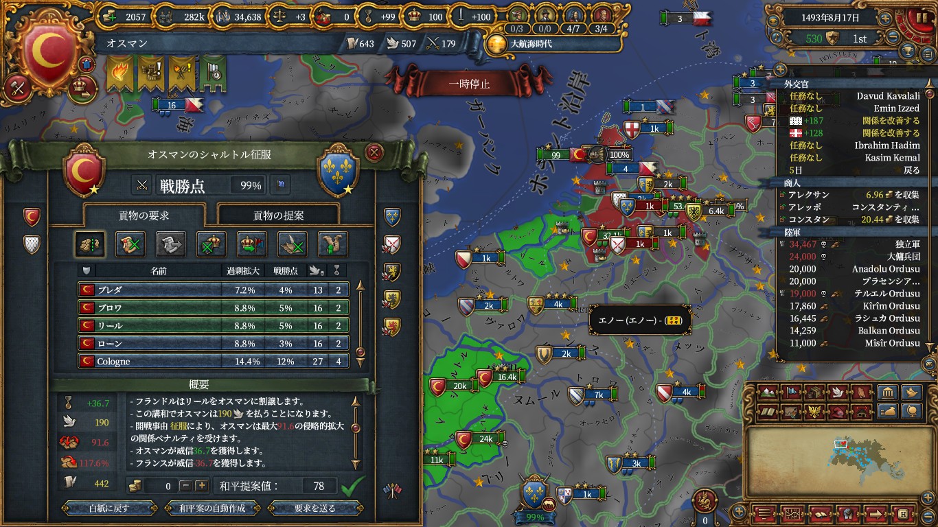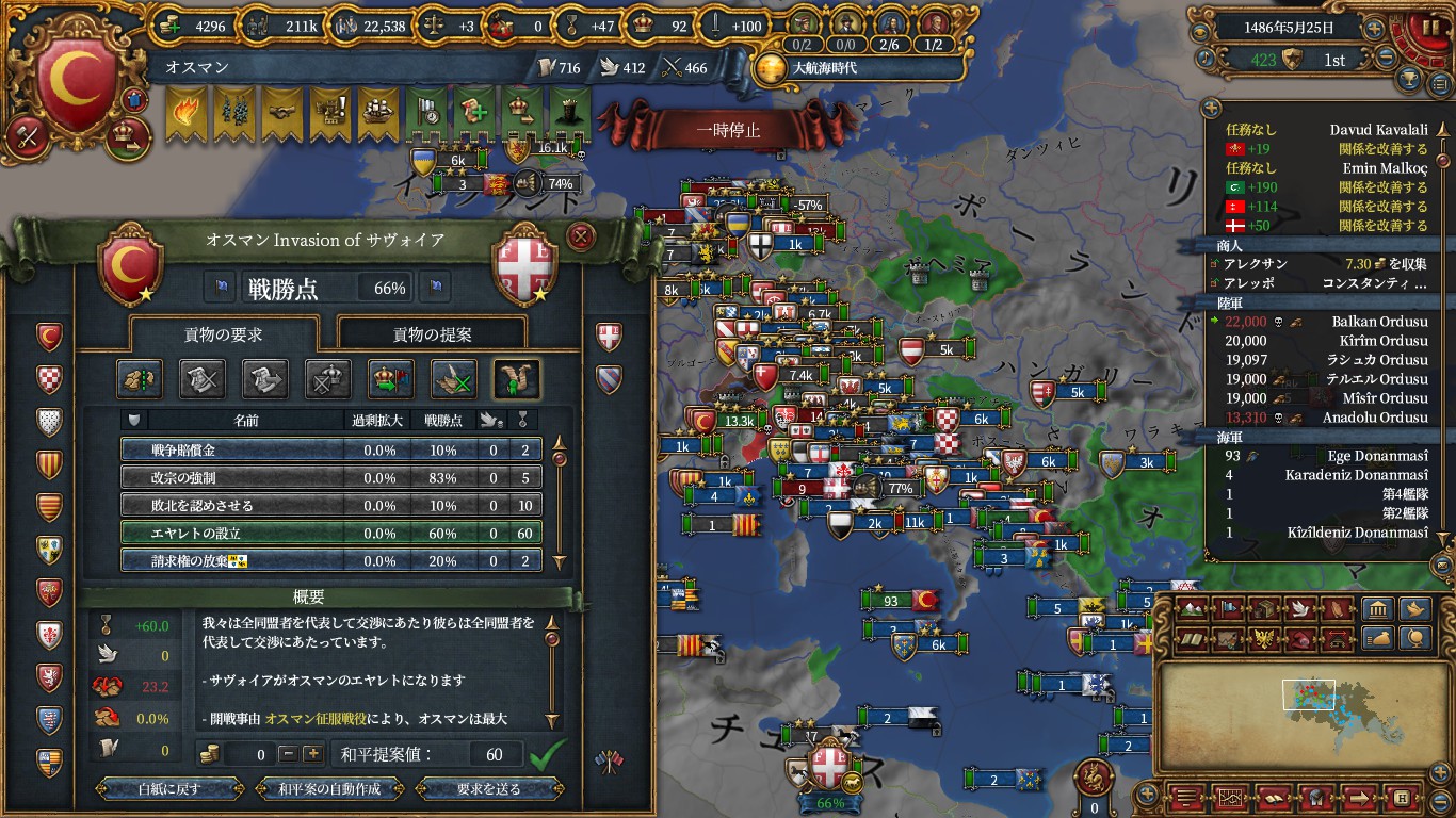 また、ブリテン攻めを終盤に行わず、外交コンプした段階でアイルランドno cbからイングランド攻めは合理的でした。