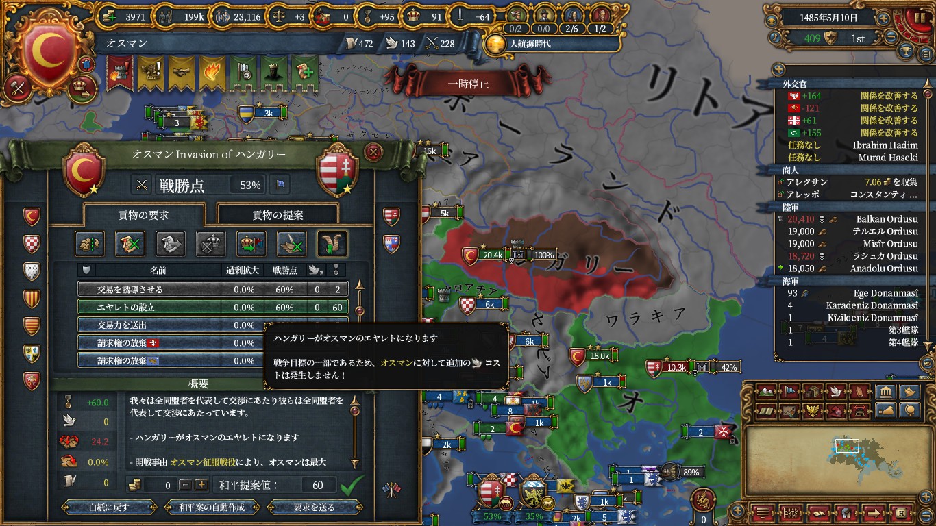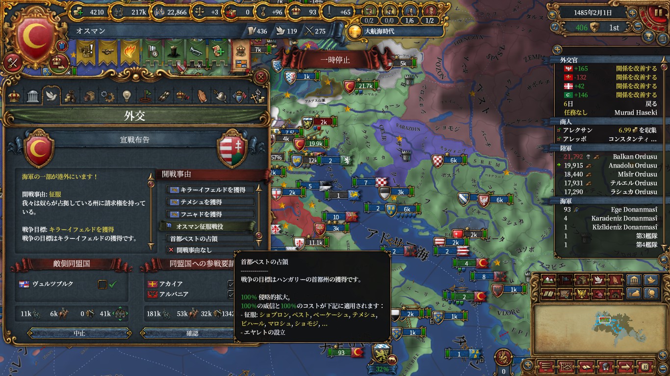 ミッションで貰えるハンガリーエヤレトCBを使い宣戦。