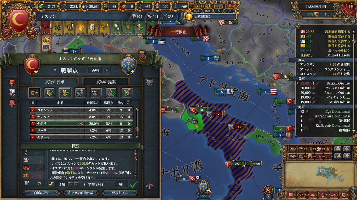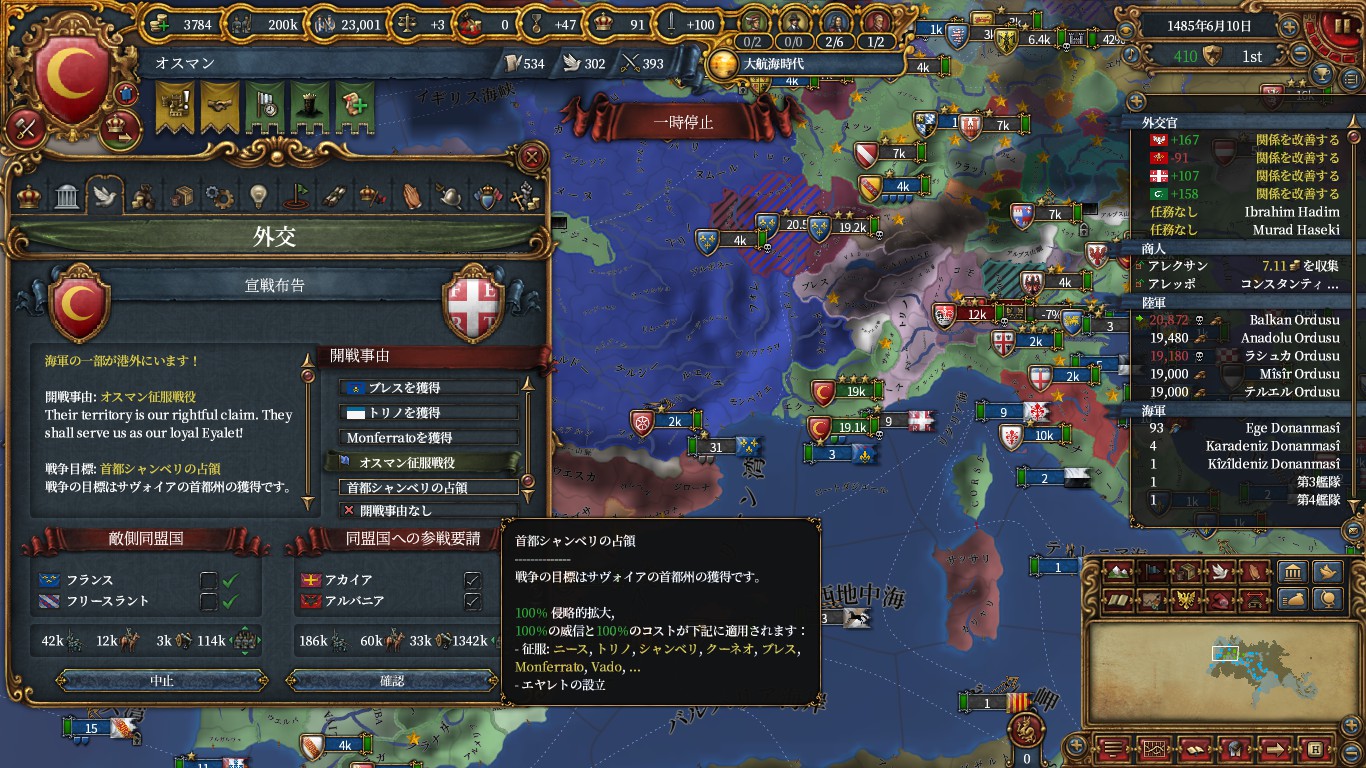 なんならナポリやサヴォイも序盤で削ることができれば属国化できそうです。