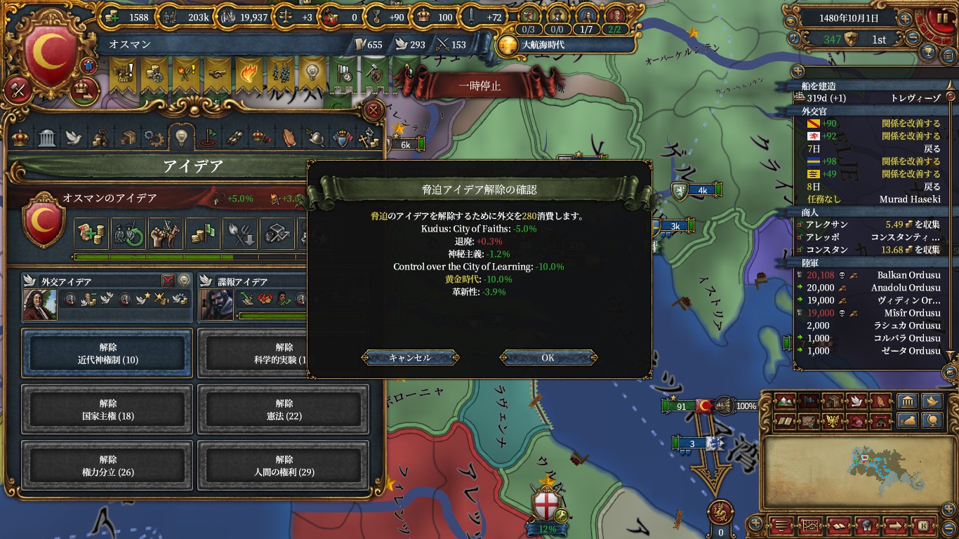 これをしないなら、オスマン実績で諜報を取る意味は少なそうです。軍隊操作が凡庸な自分には最適でした。
