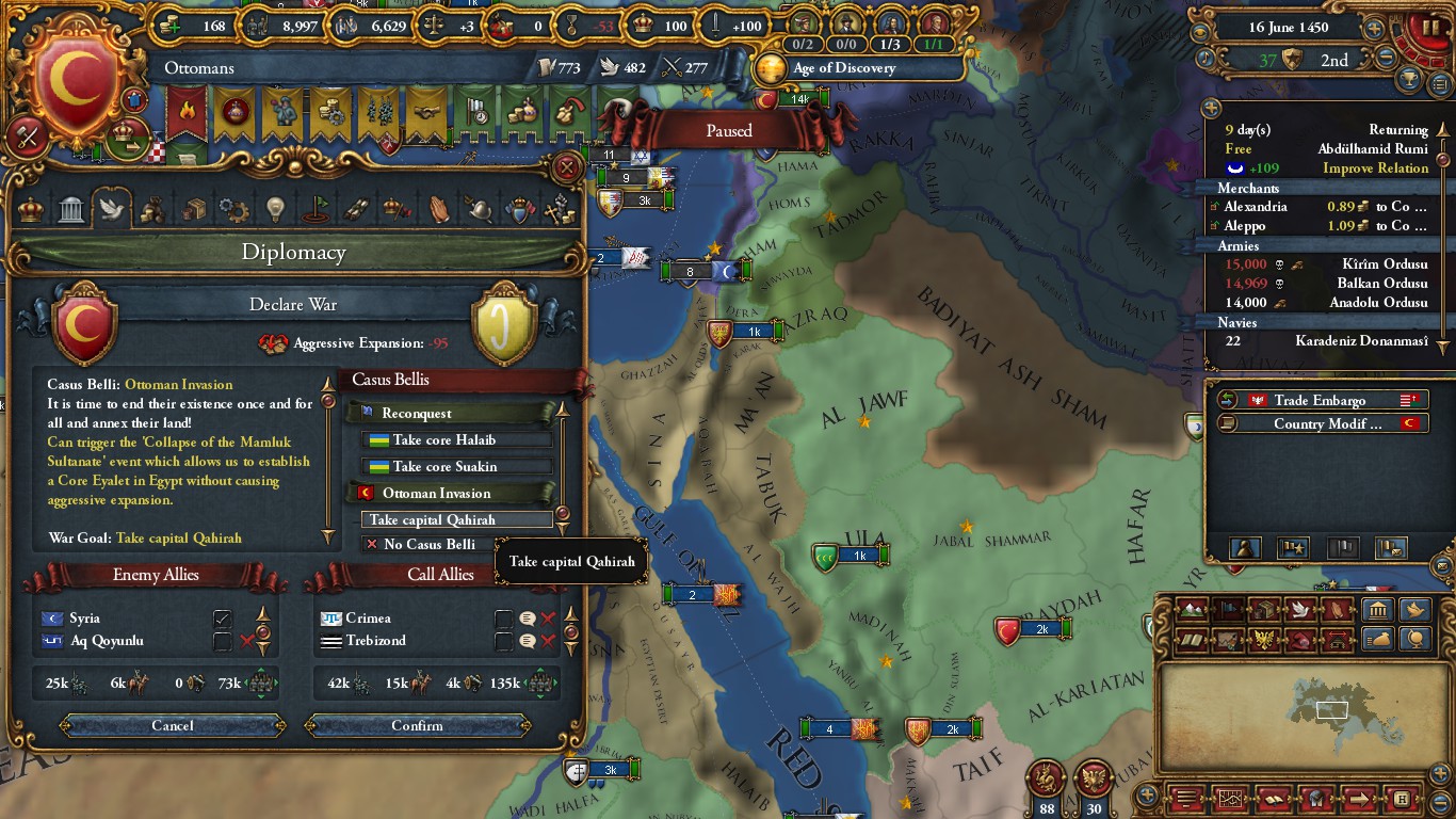 そして1450年ミッションから得られる特殊CBで宣戦しました。