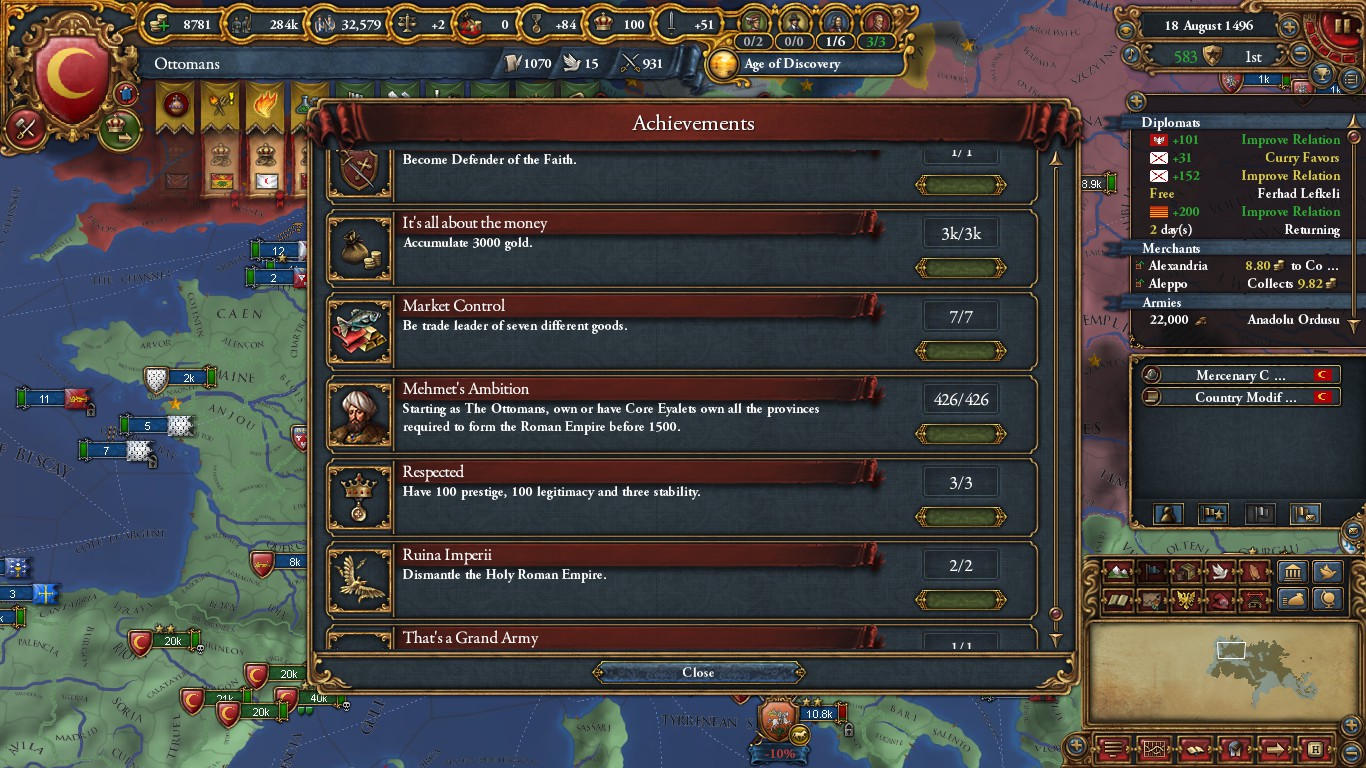 この実績はイスラム圏よりもキリスト教圏のほうが征服する開発度が大きい分、カトリックへのAEを気にする必要があります。