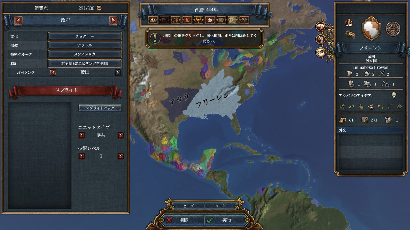 カスタム国家 「フリーレン」と「アウラ」を用意。