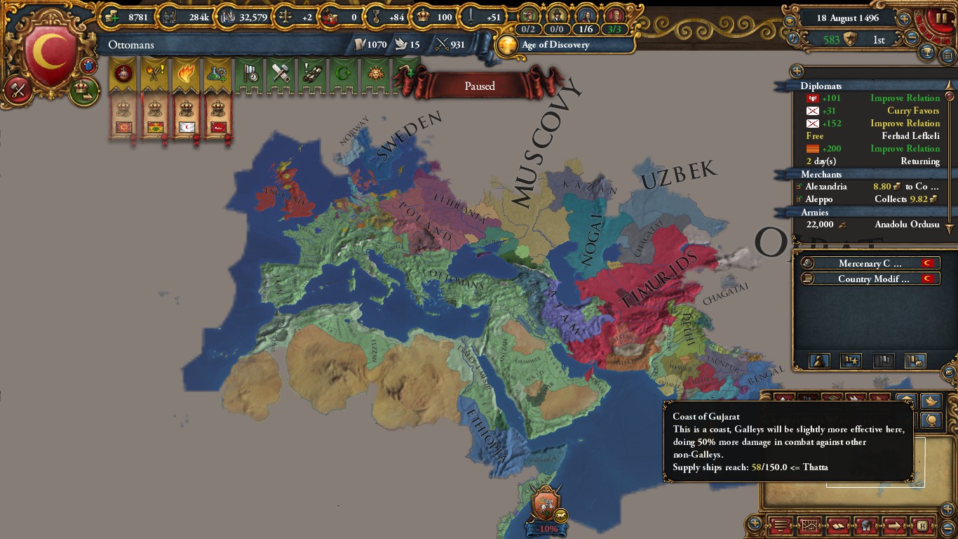 このときは久しぶりのeu4だったため、あまり効率よくプレイできませんでした。
