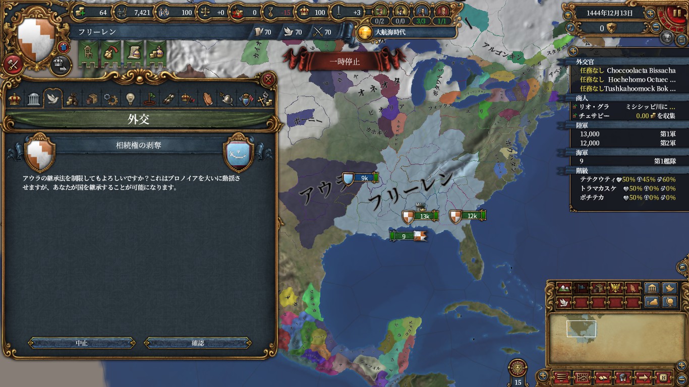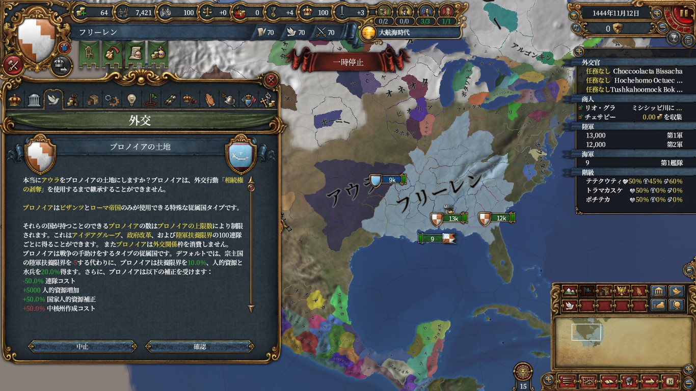 そのあとにナワトルに改宗すれば、先程のカスタム国家と同様、プロノイアの即併合が可能になります。