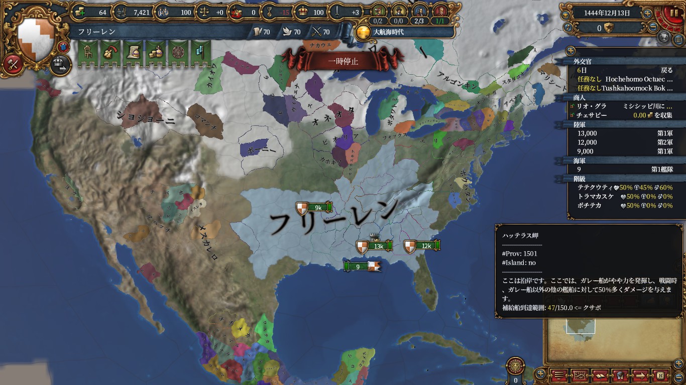 ただし、ナワトル改宗したときにprimitiveになるので、輸送船以外の船が使えなくなったり、開発コストペナルティを受けたり、金山からの収入が減ったりします。即併合できる恩恵に比べればこれぐらいのデメリットは大したことは無いと思いますが。