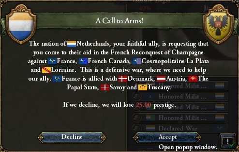 しかし、何故かGreat BritainではなくSpainだけに同盟参戦要請を送ってきたようで