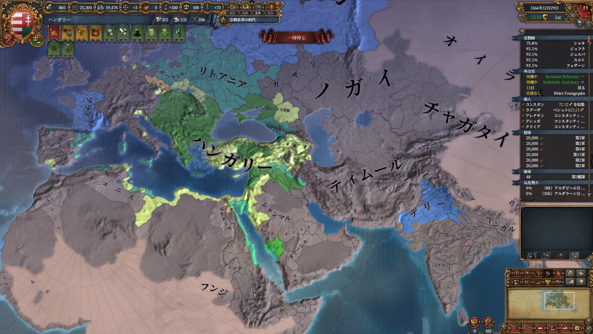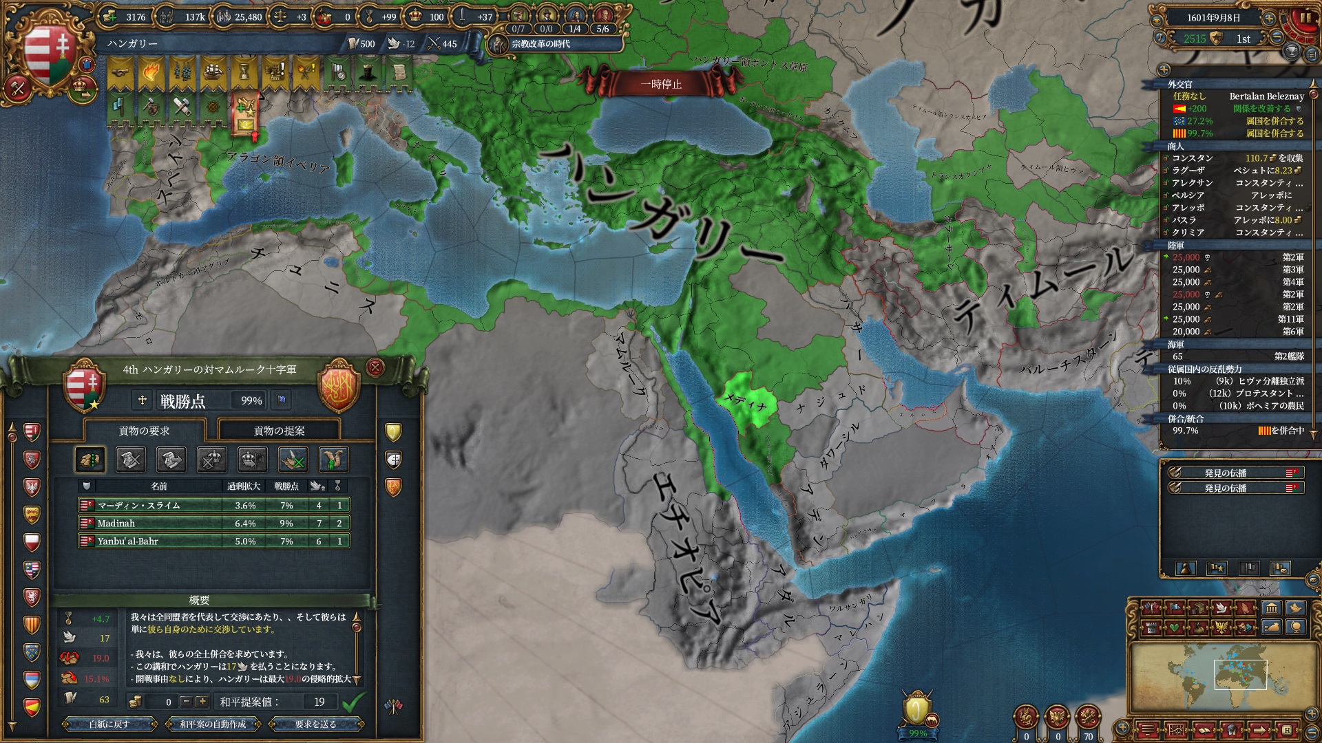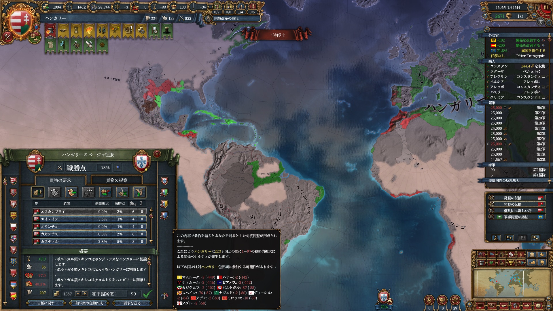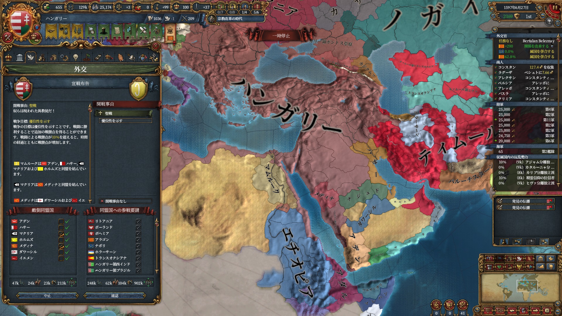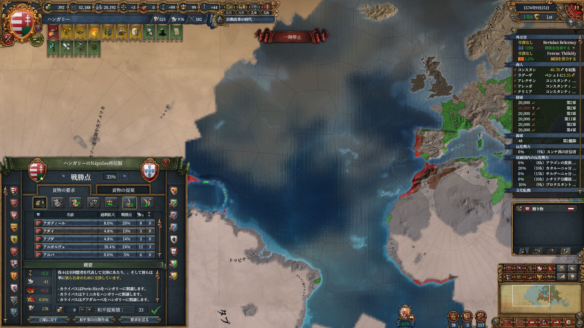 マムルークはもう気にする程ではないですが、スペイン+ポルトガルは結構な軍量になるので停戦明け放置は避けたいところ。