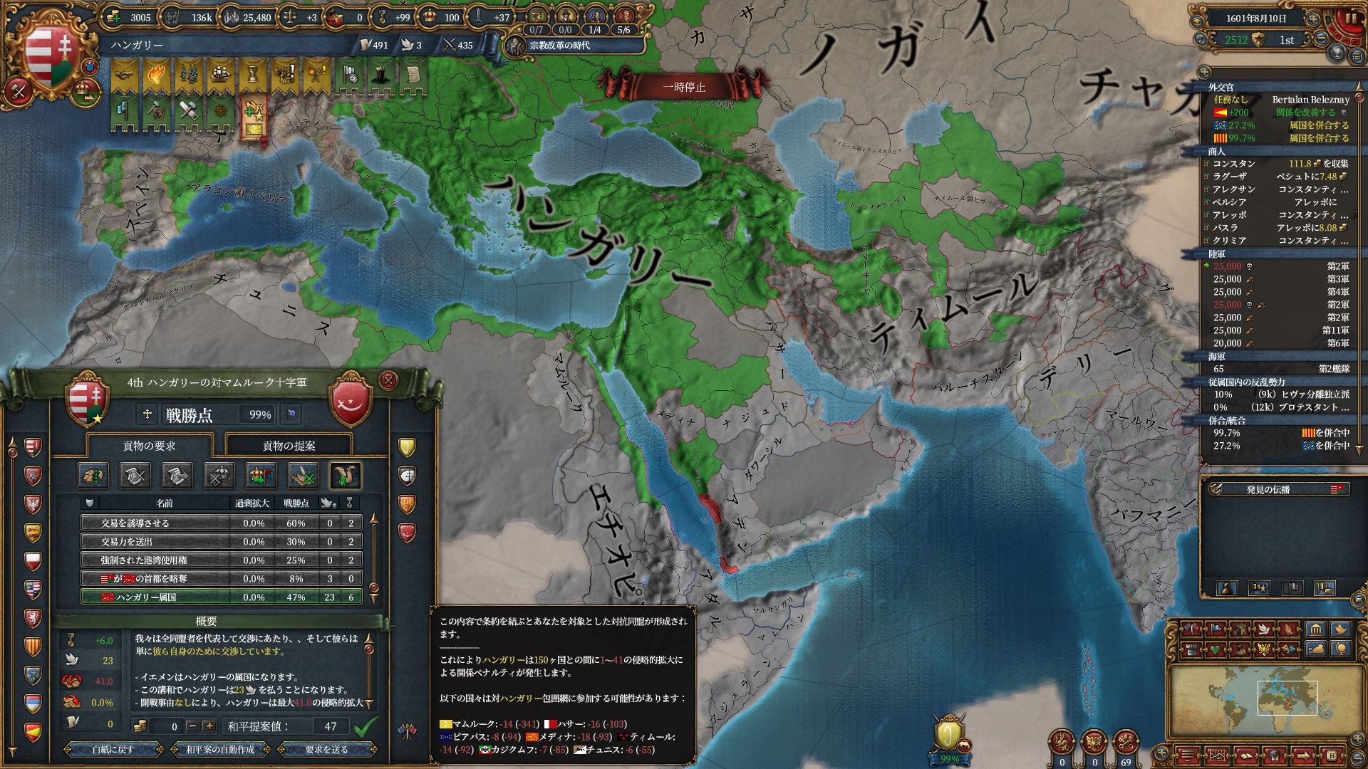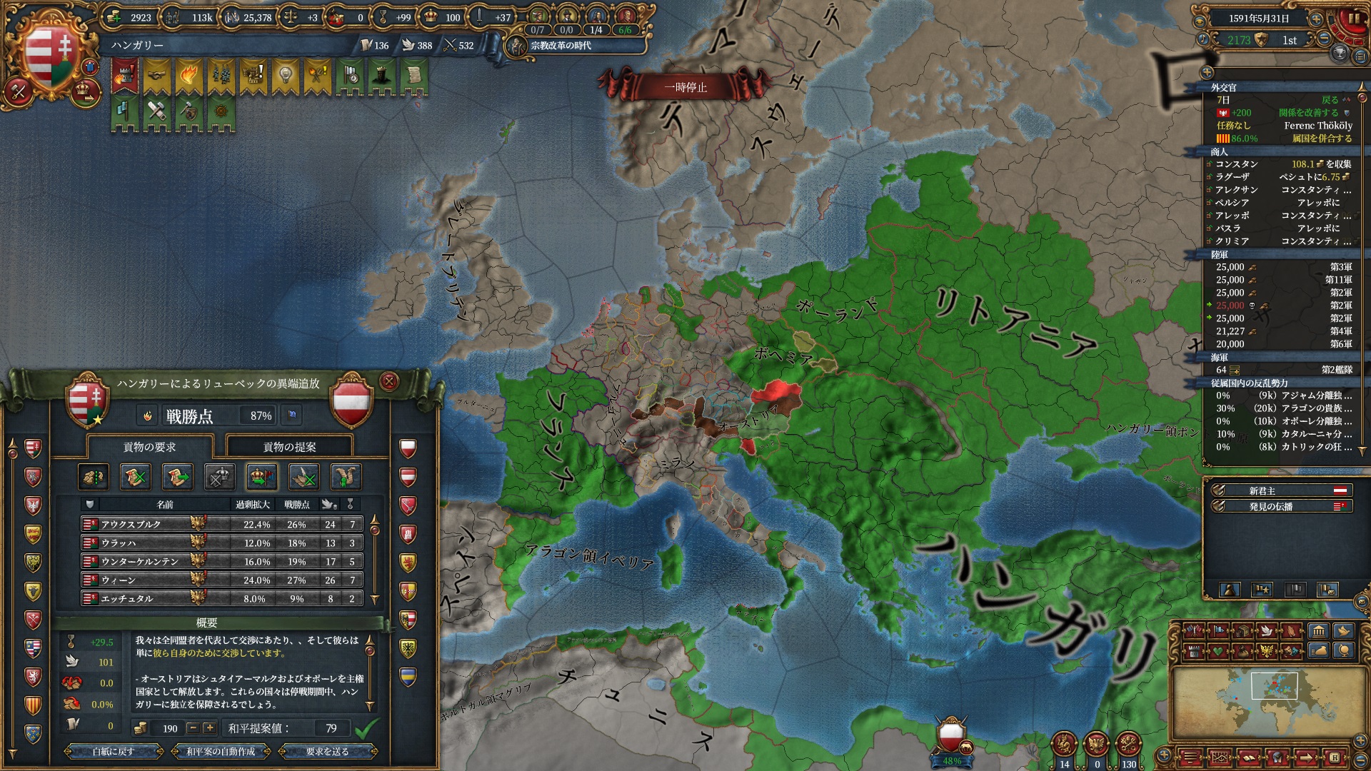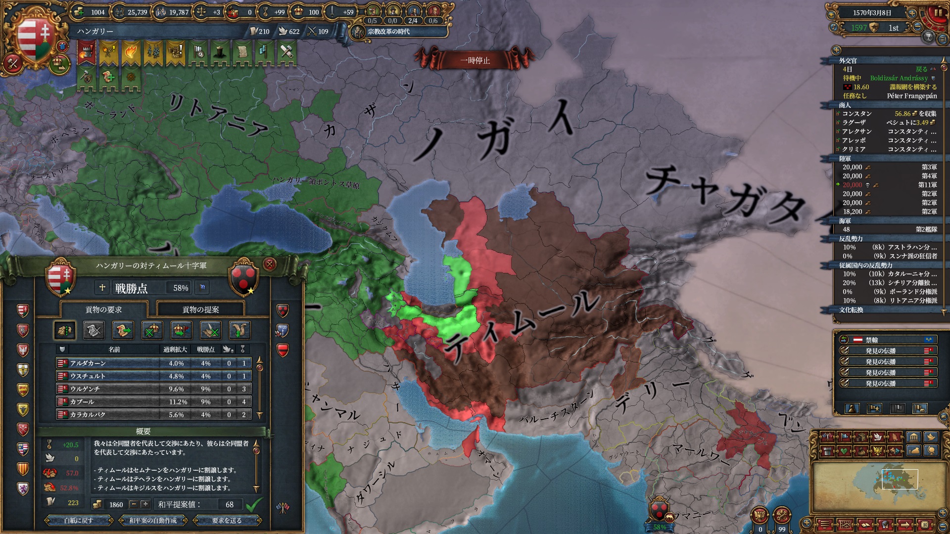 ここからイベリア勢のAEが冷ませなくなり、ティムールと同様停戦ループに入りました。