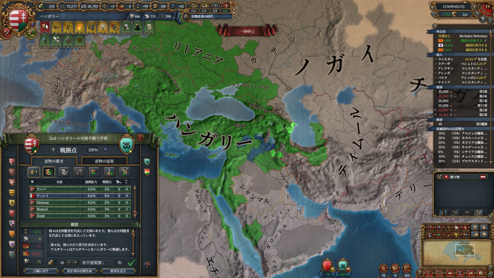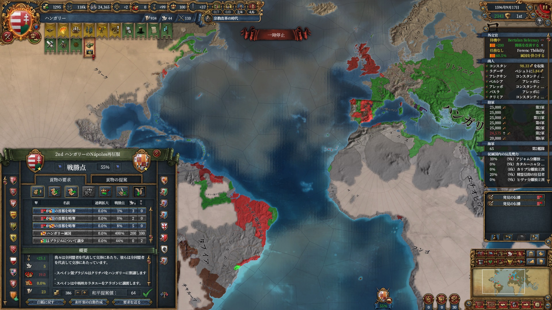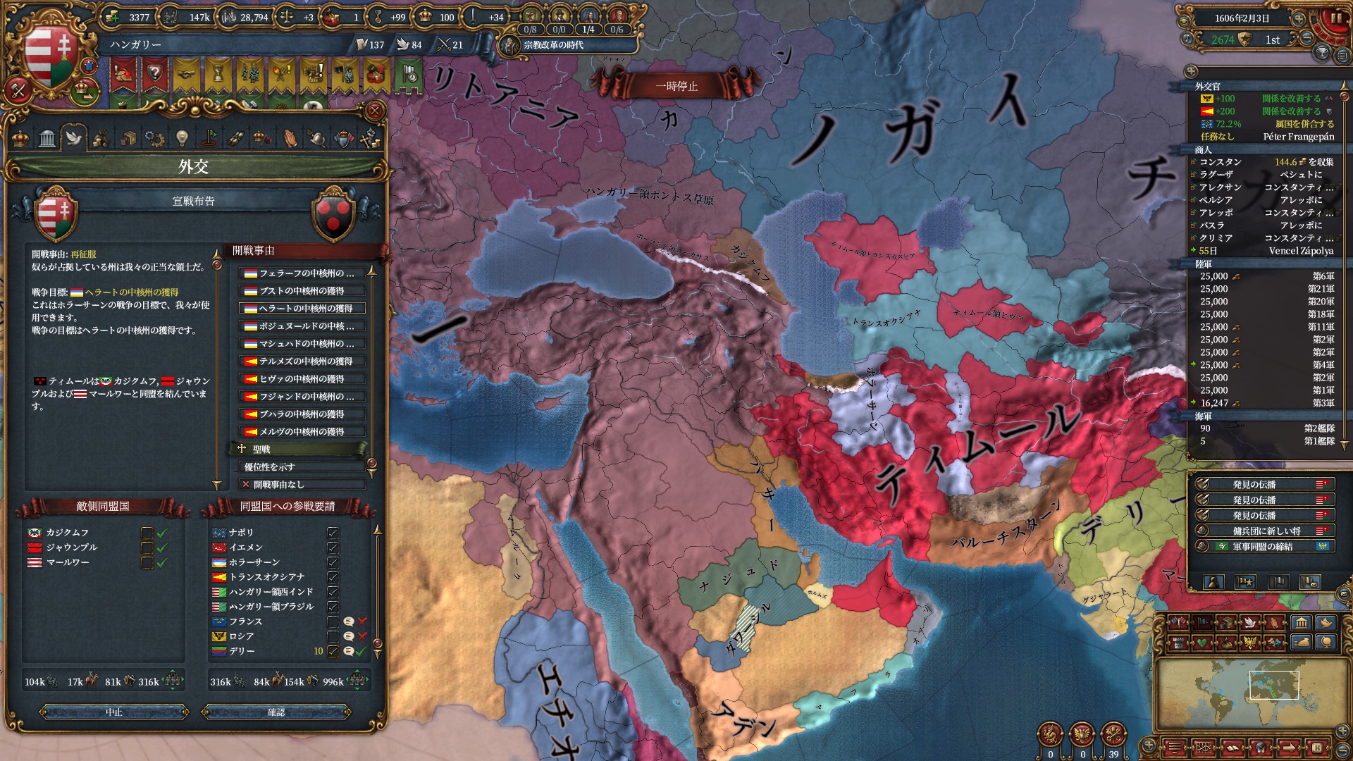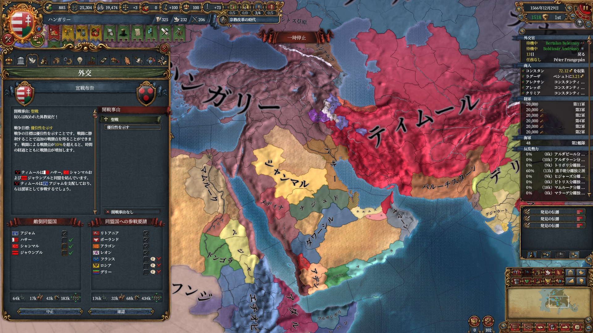 ここからイベリア勢のAEが冷ませなくなり、ティムールと同様停戦ループに入りました。