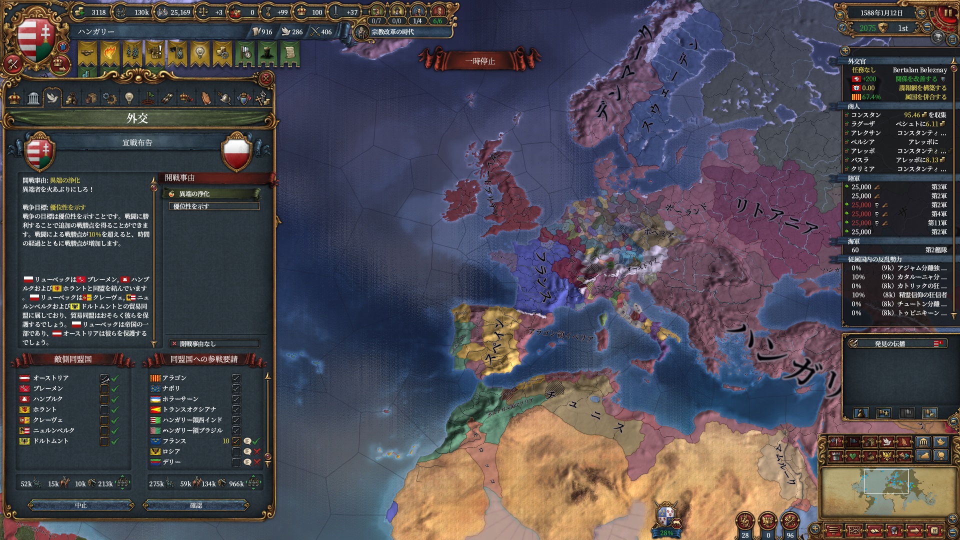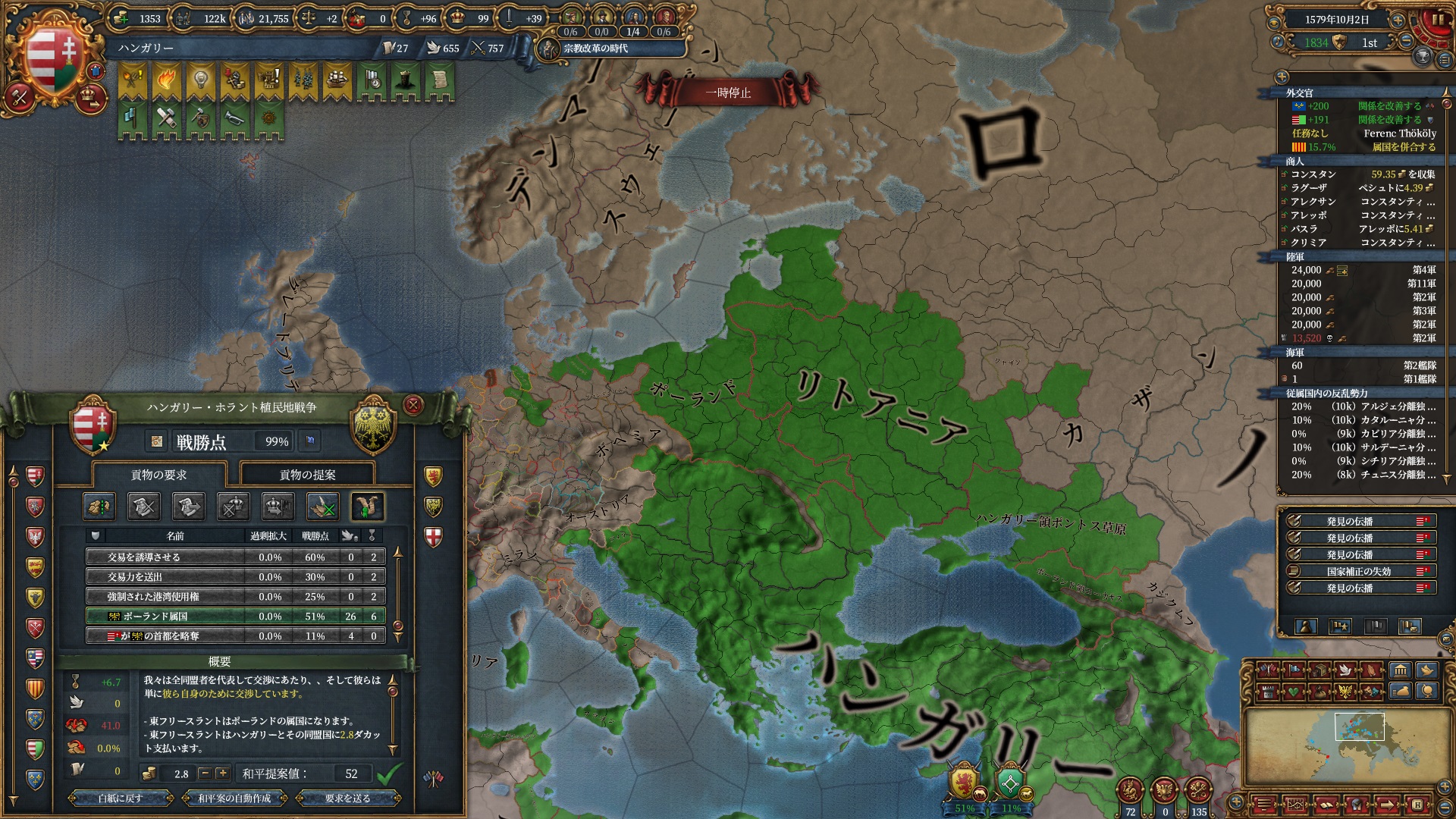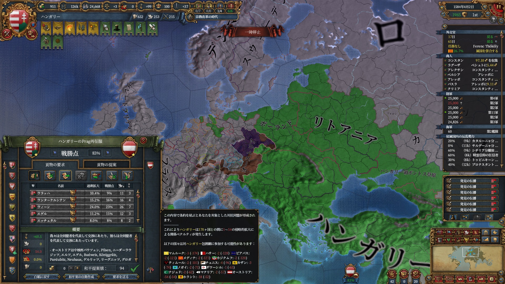 またこの戦争により1594年消滅コアが全て期間延長されたため、もう暫く再征服は続けられそうです。
