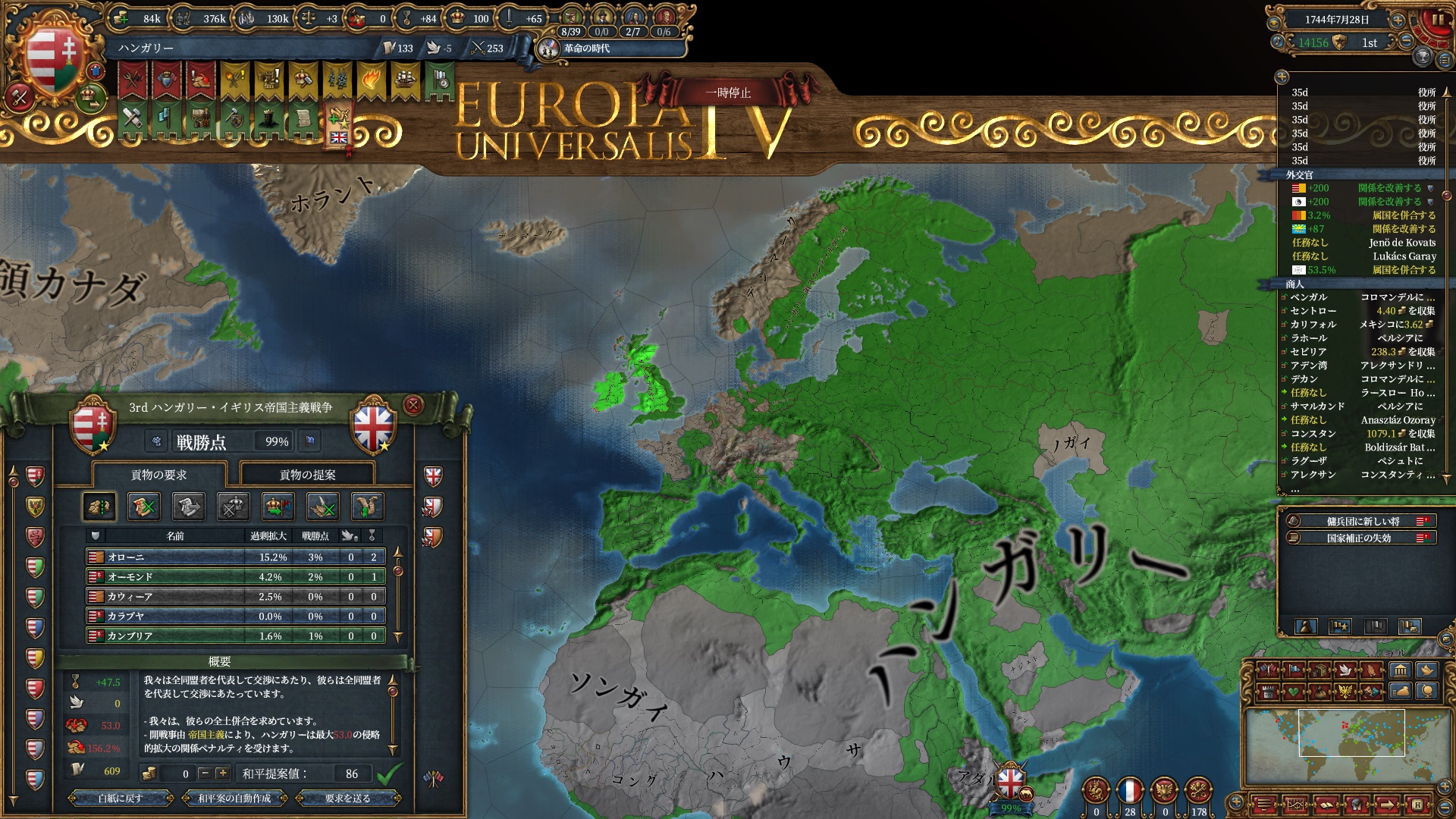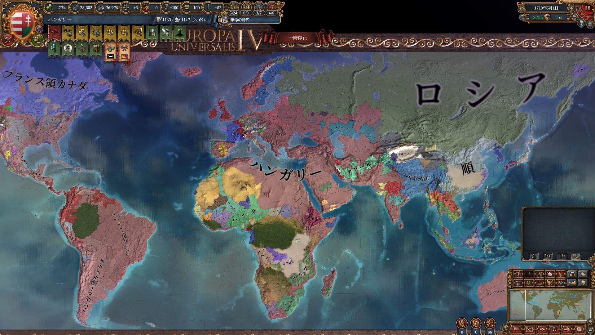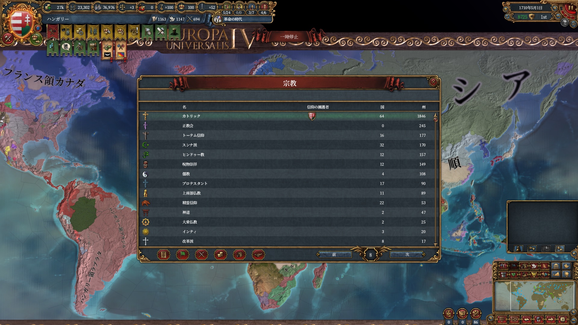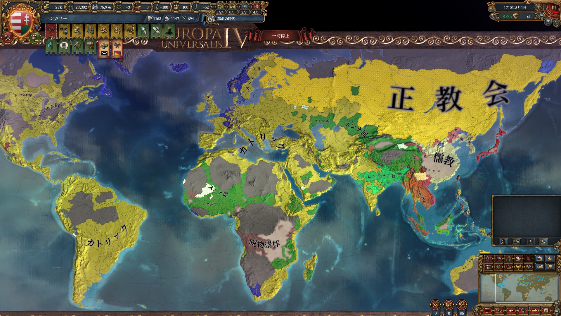 最近は衛星国は宗教アイデアを取ってくれるのと、植民地国家が自発的に改宗するのでかなり余裕がありそうです。