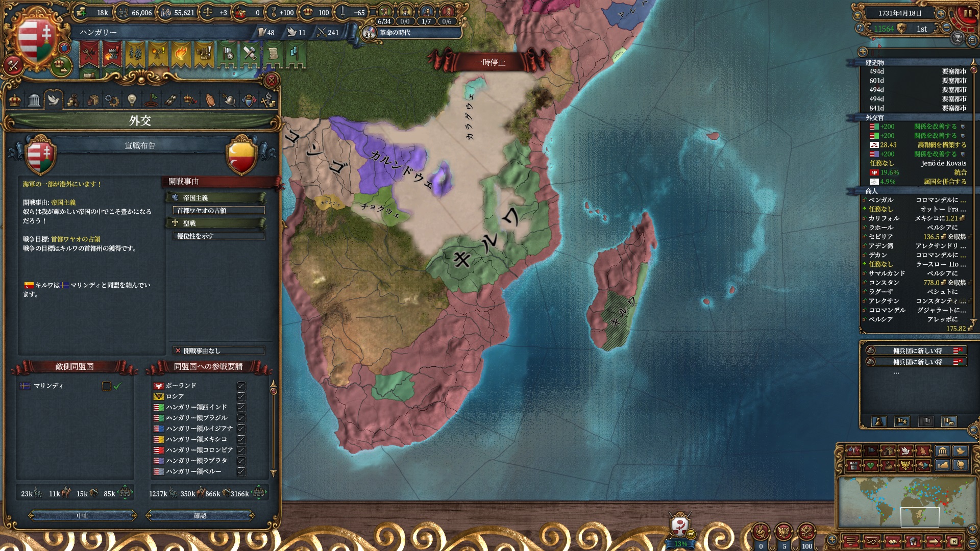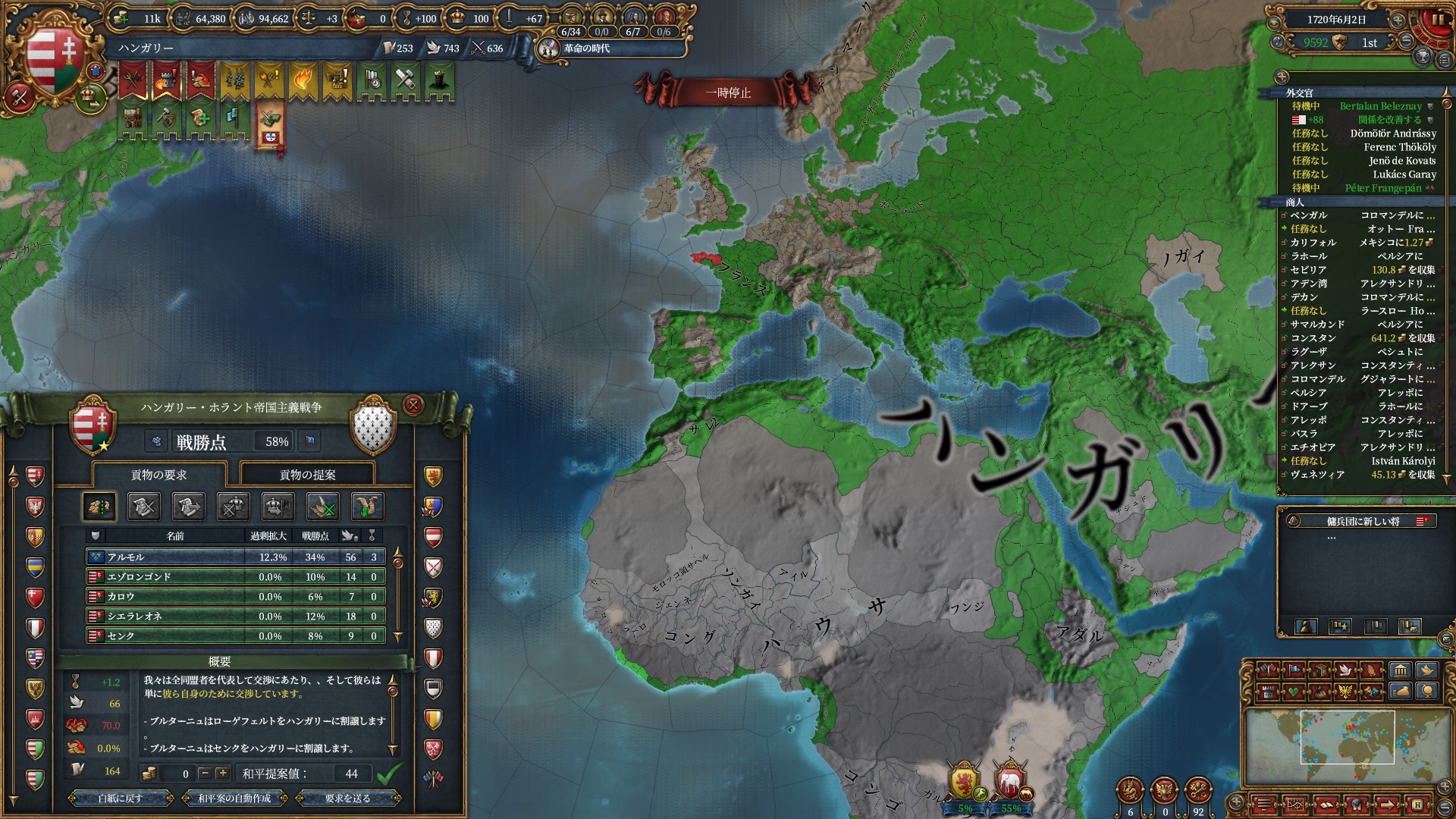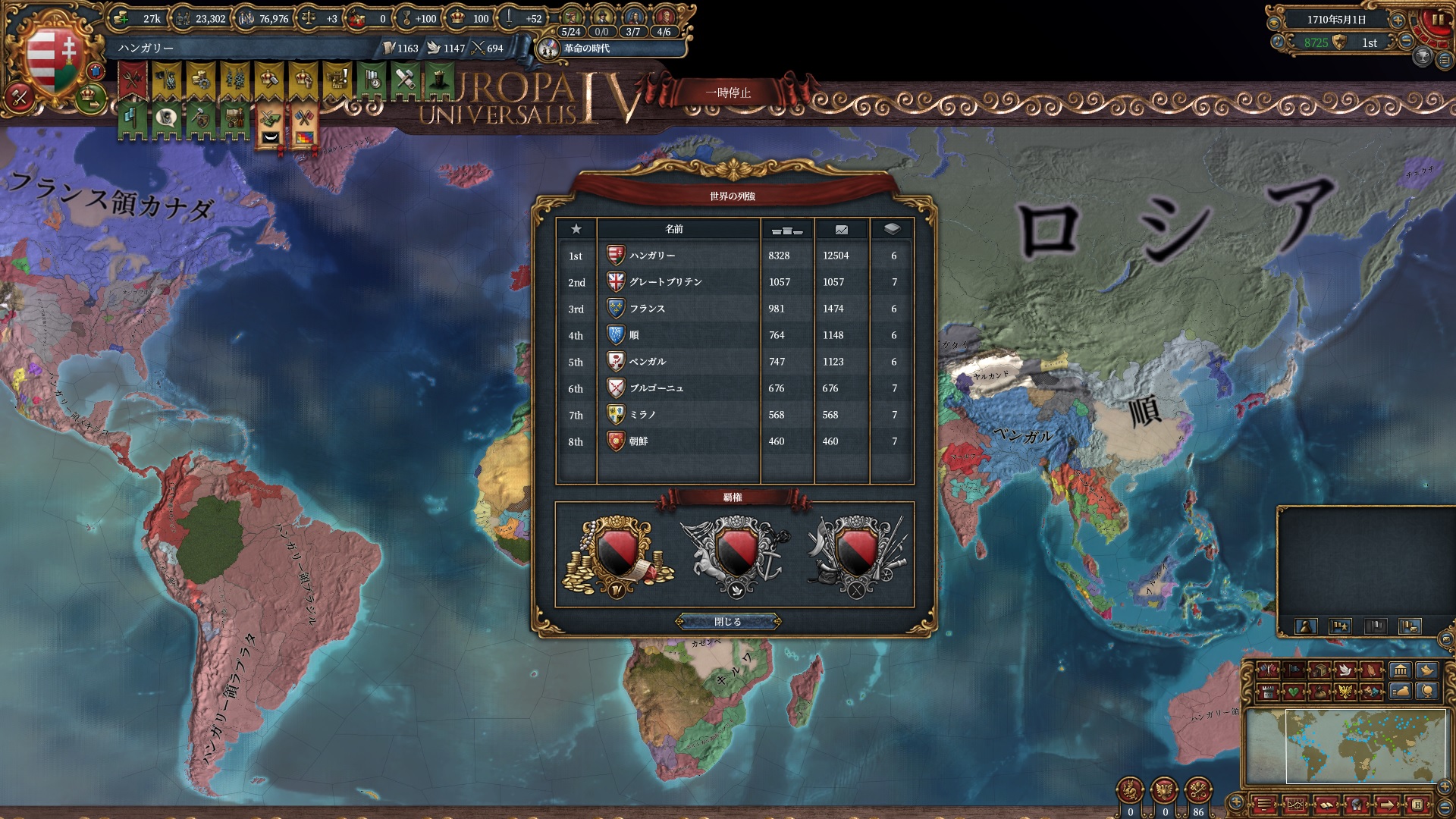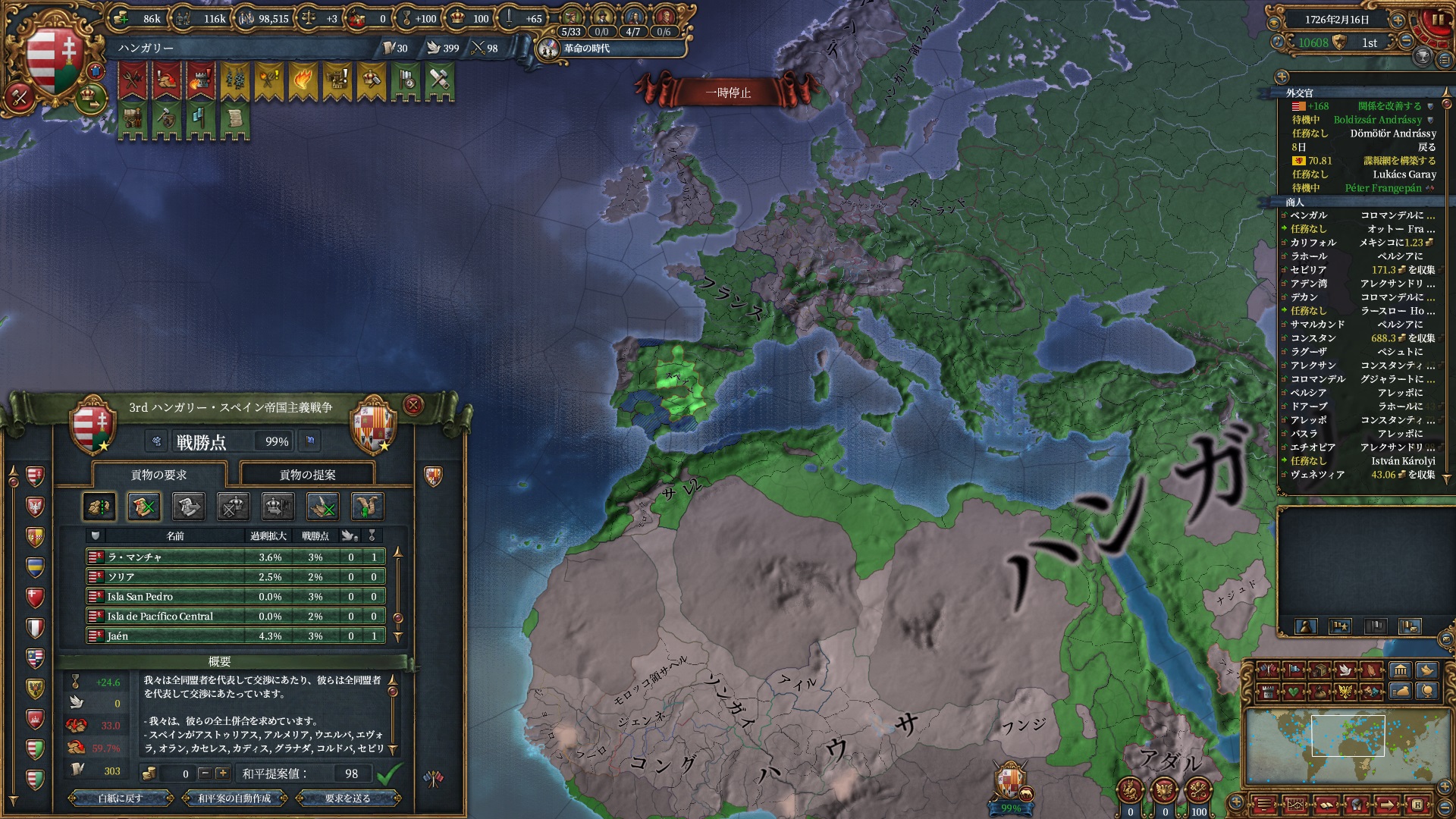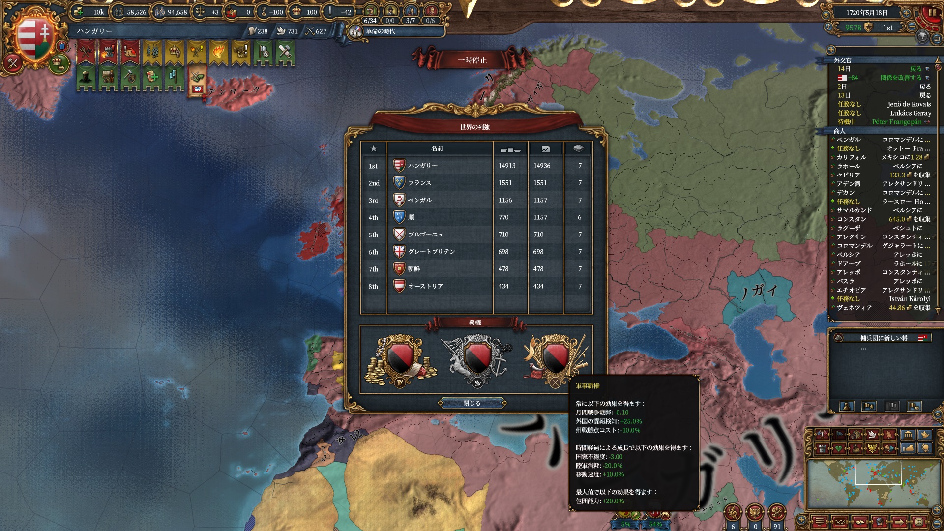 ようやく陸軍1000kが(MP的に)雇えるようになりました。軍事覇権を宣言します。