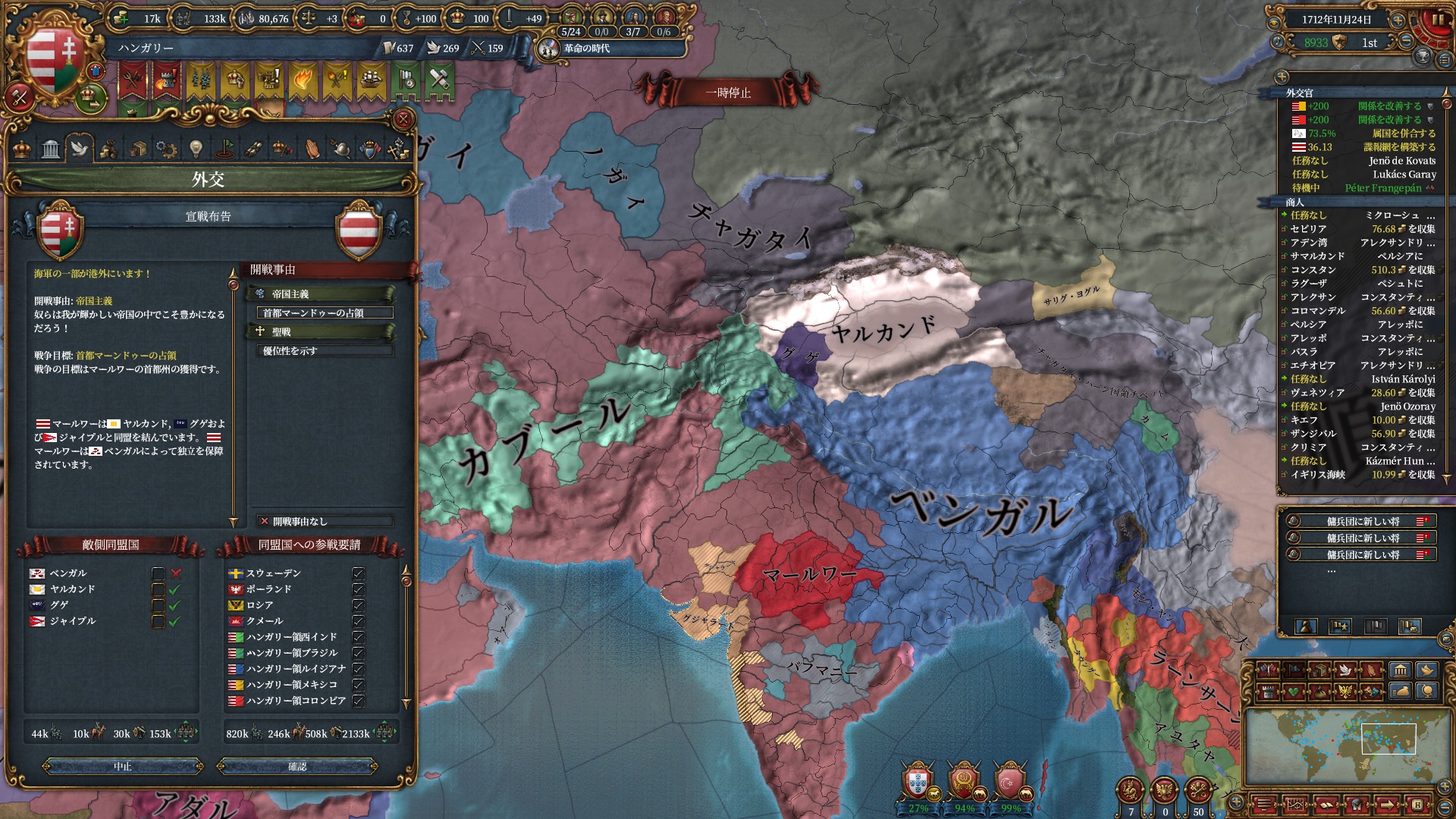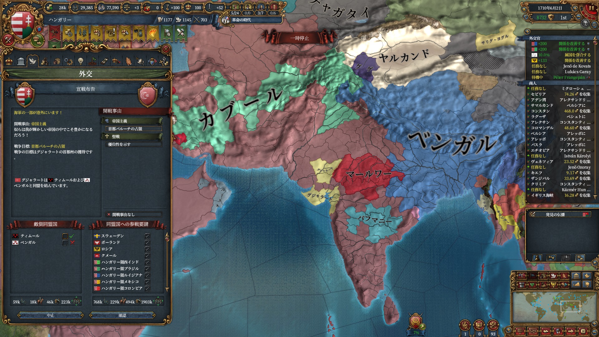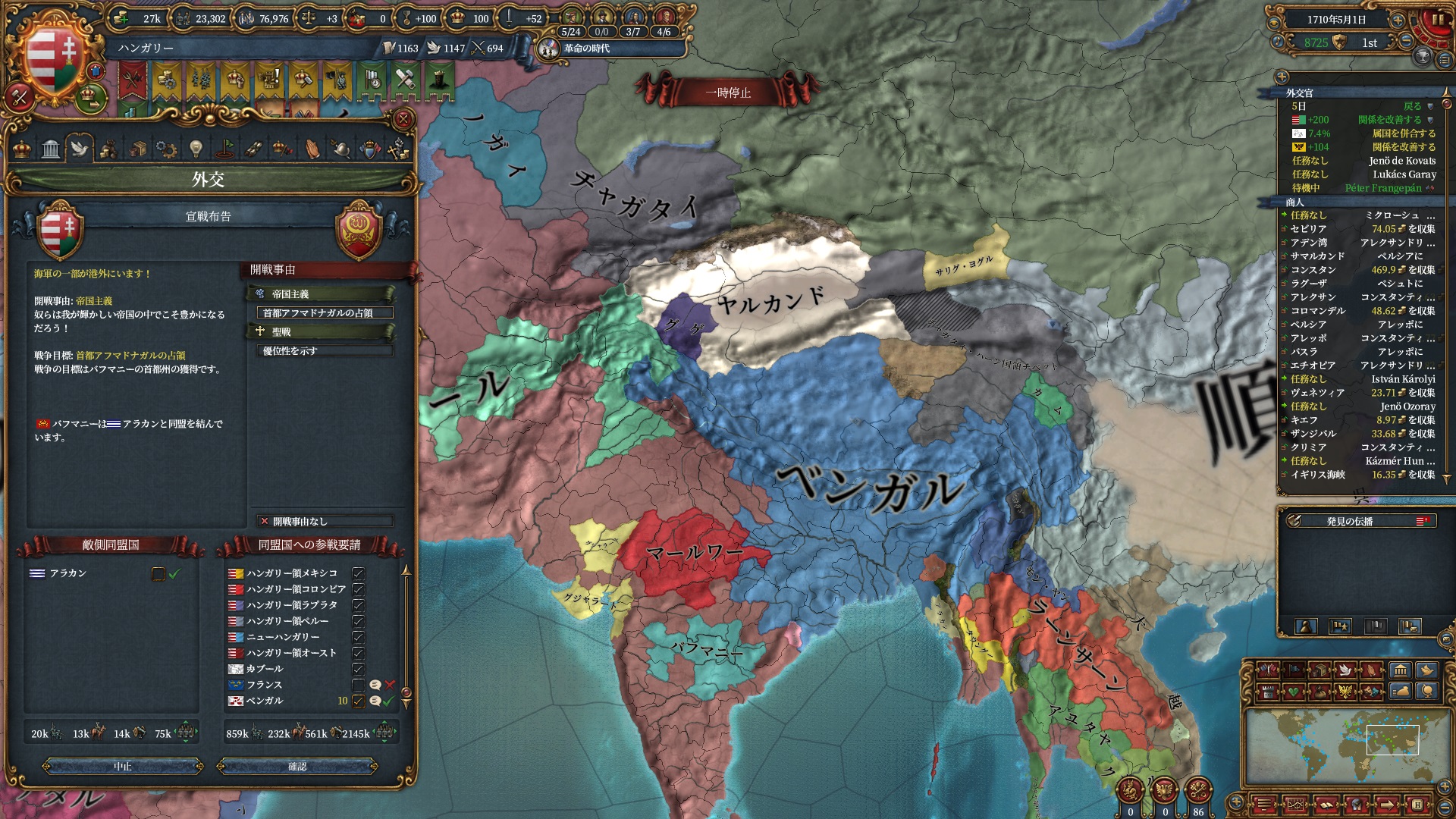 それなりな同盟関係・軍量なため少し手間ですがベンガル戦開幕。