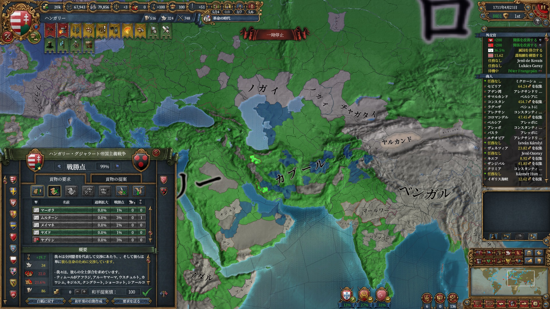 アユタヤ戦はあまり点数が伸びておらず、もう暫くかかりそうだったためベンガルと同盟だったチャガダイを殴っておきます。