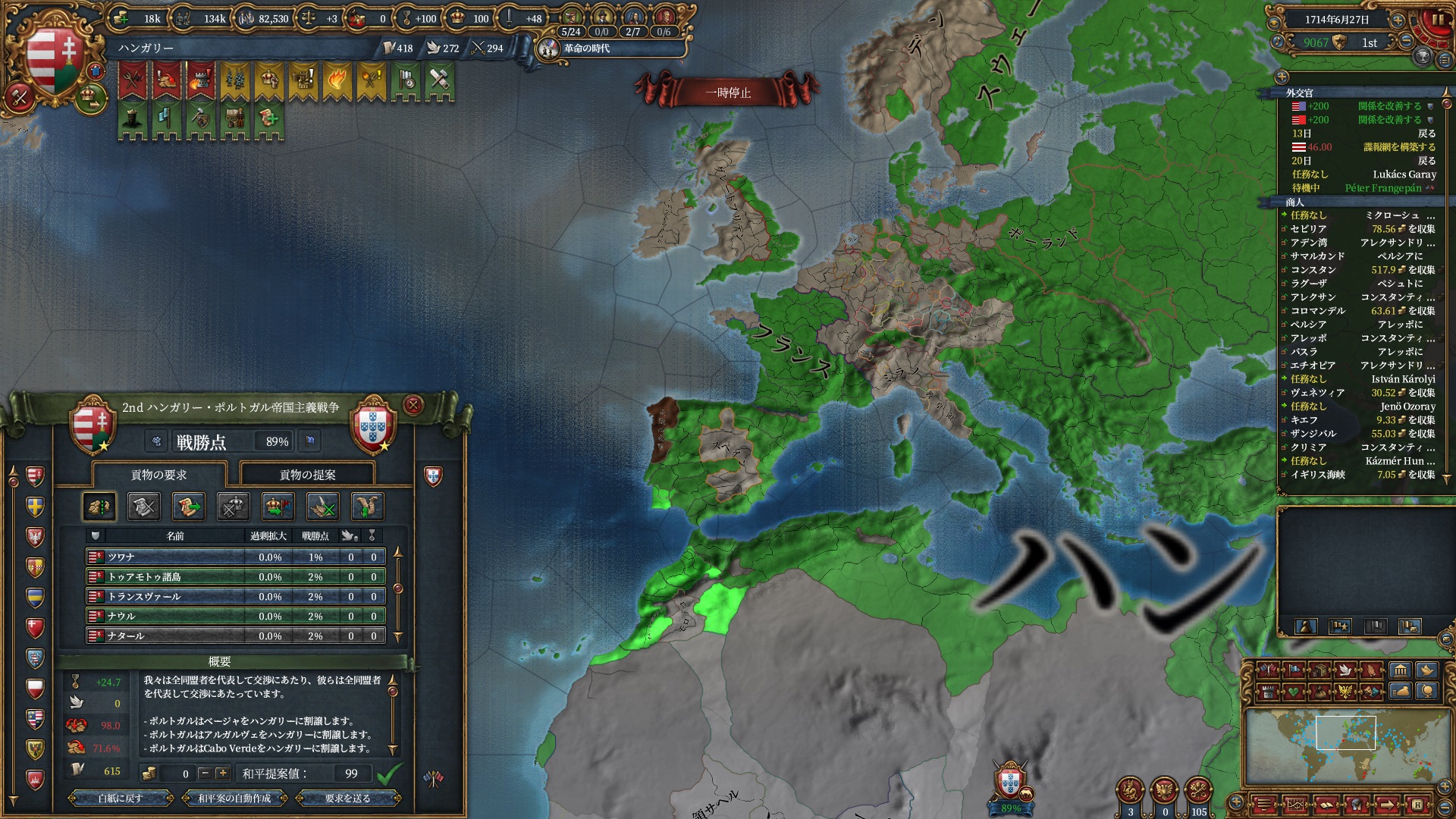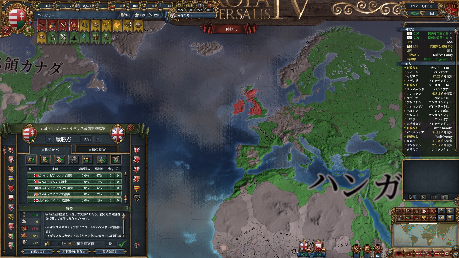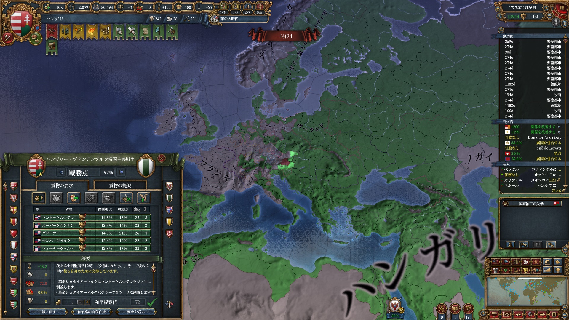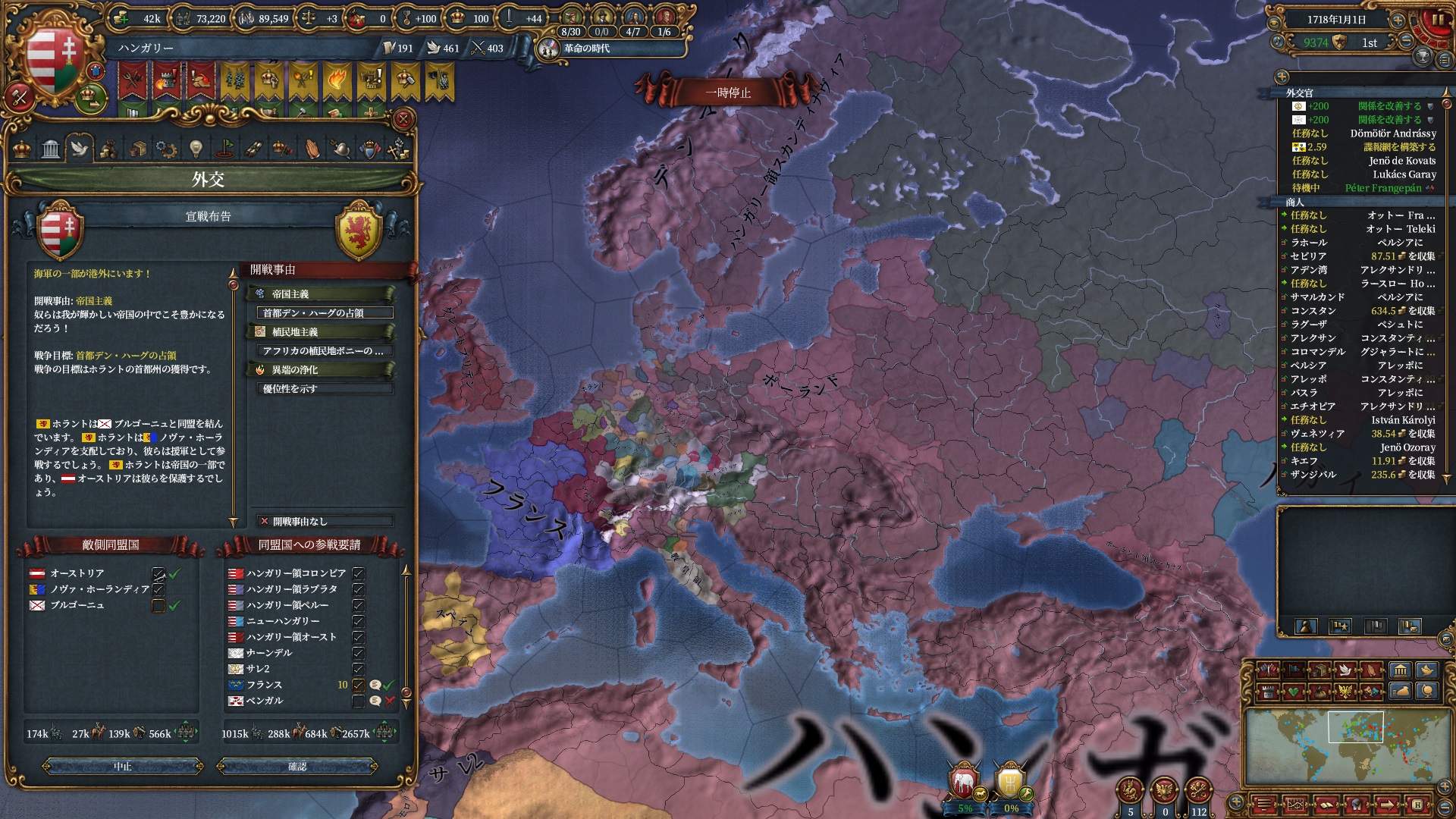 かといってポーランド統合後の観点ではハンガリーはそれら属国に対して全力でAEを飛ばしているため凄いマイナスopinionになっており、外交併合が行えない事が確定。