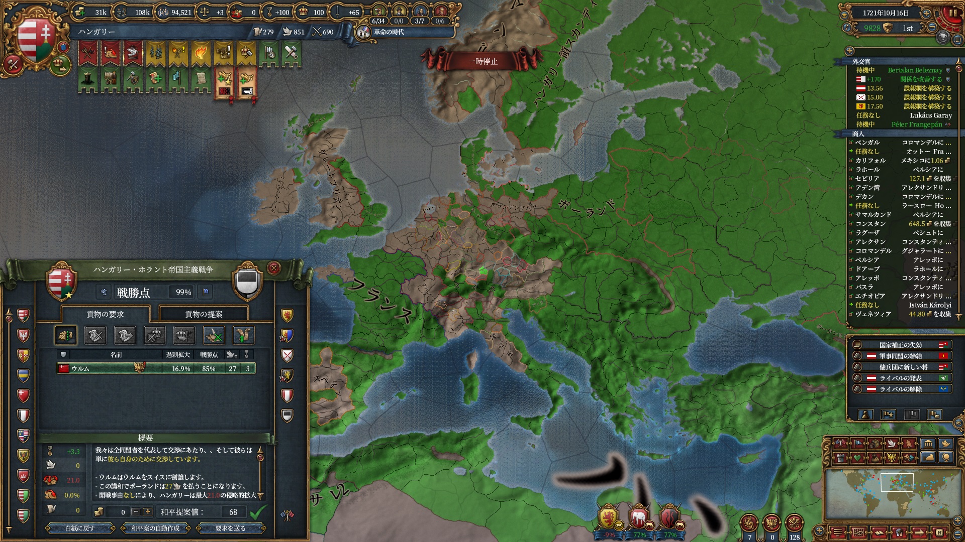 ポーランドはHREの不法な領土マイナスopinionが多く飛んだ事で属国の併合がうまく進まなくなっています。