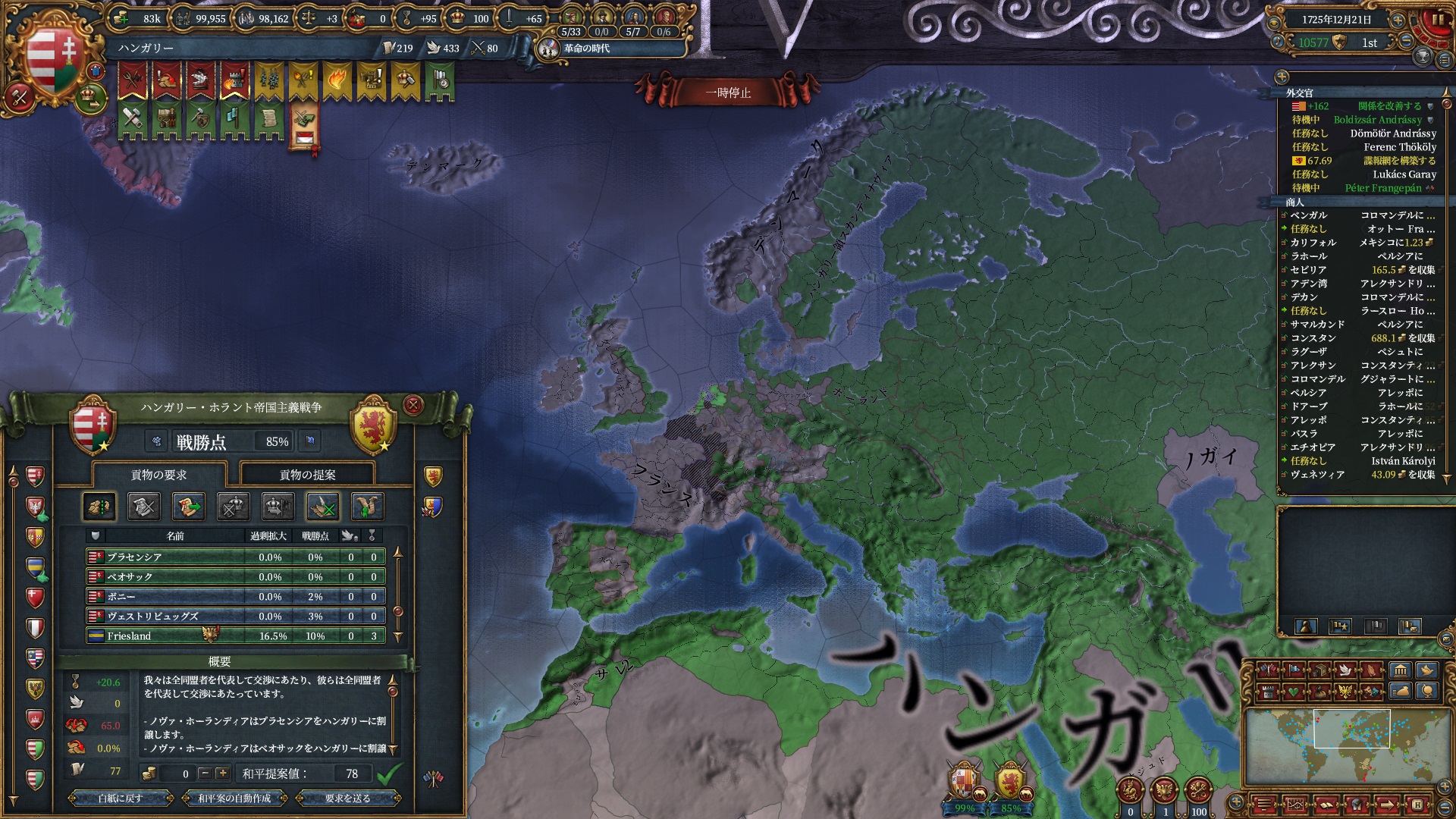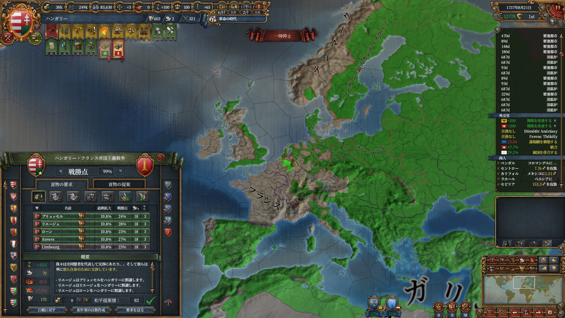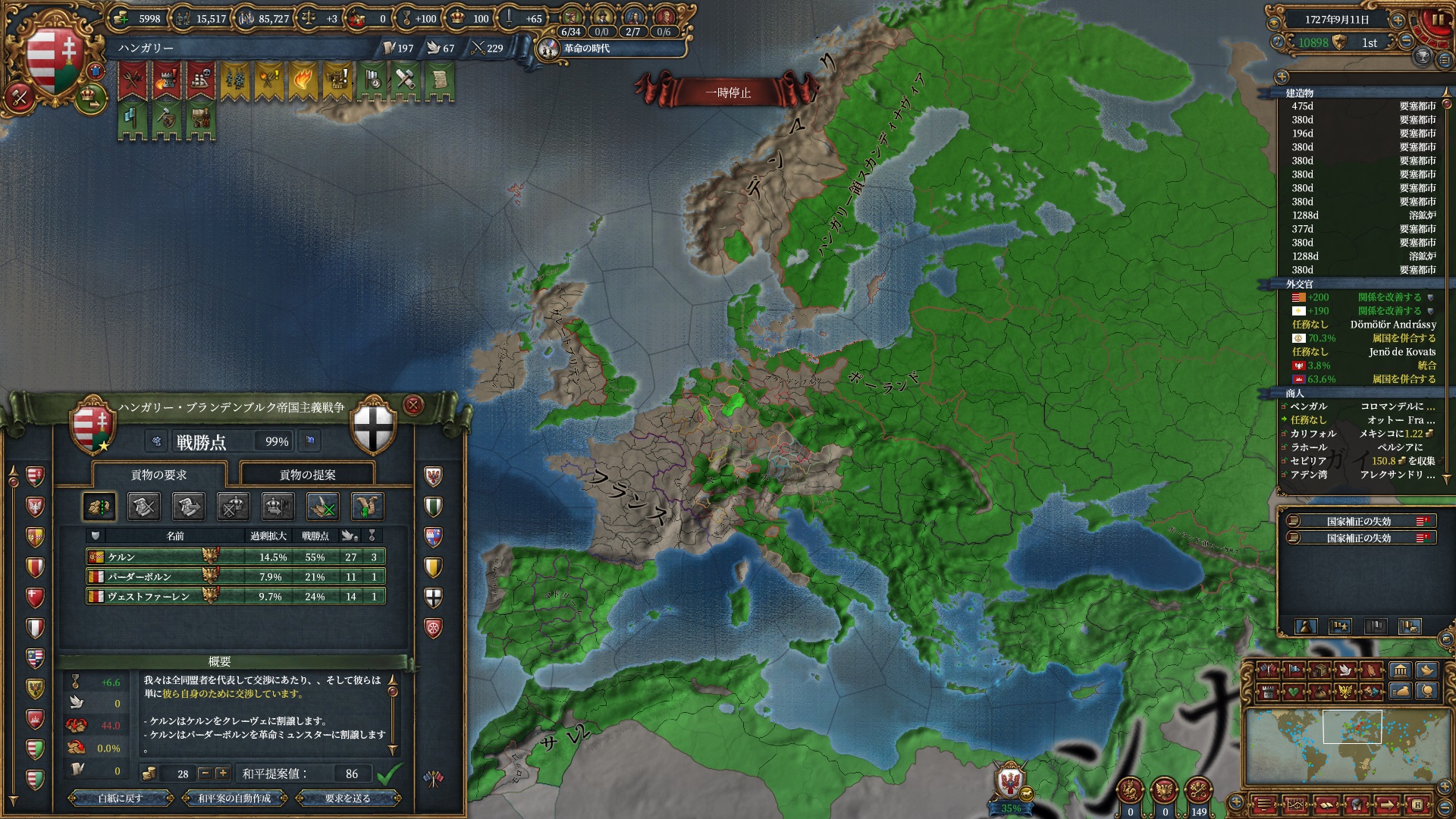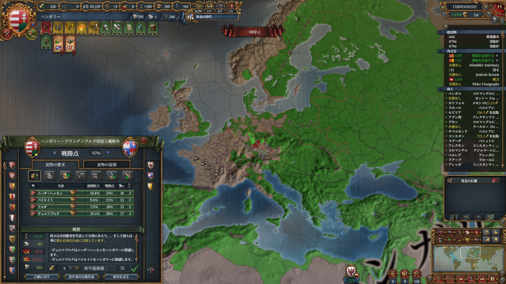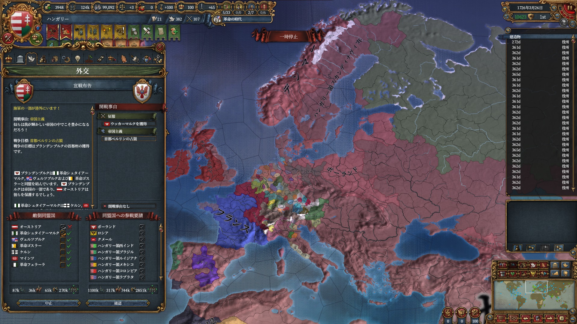 唯一チューリンゲンは属国併合が間に合ったらしい。よくやった。