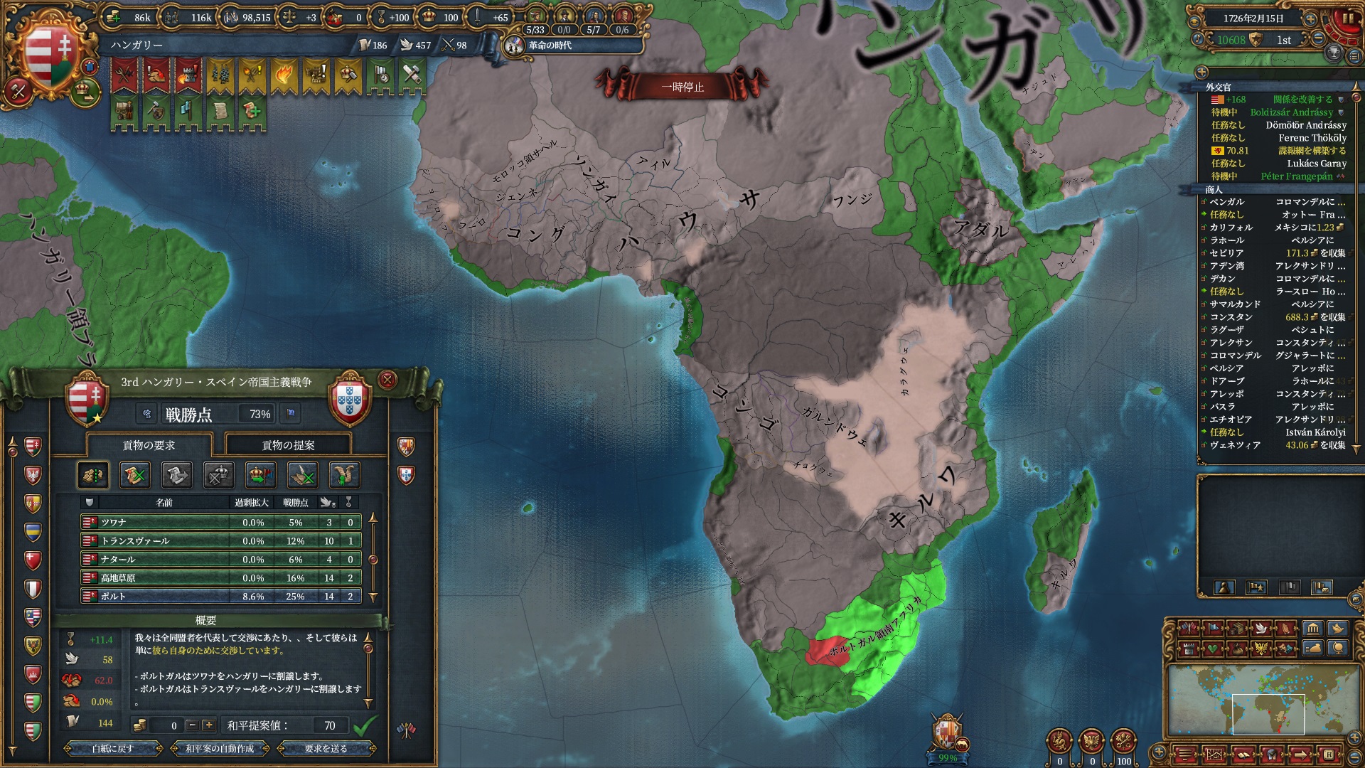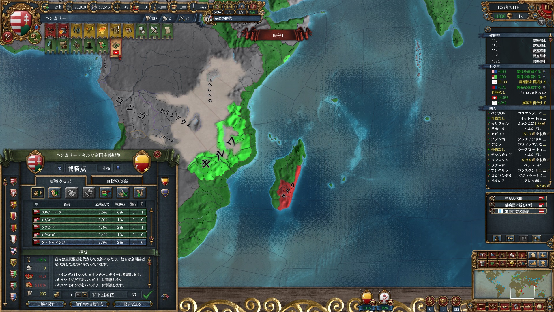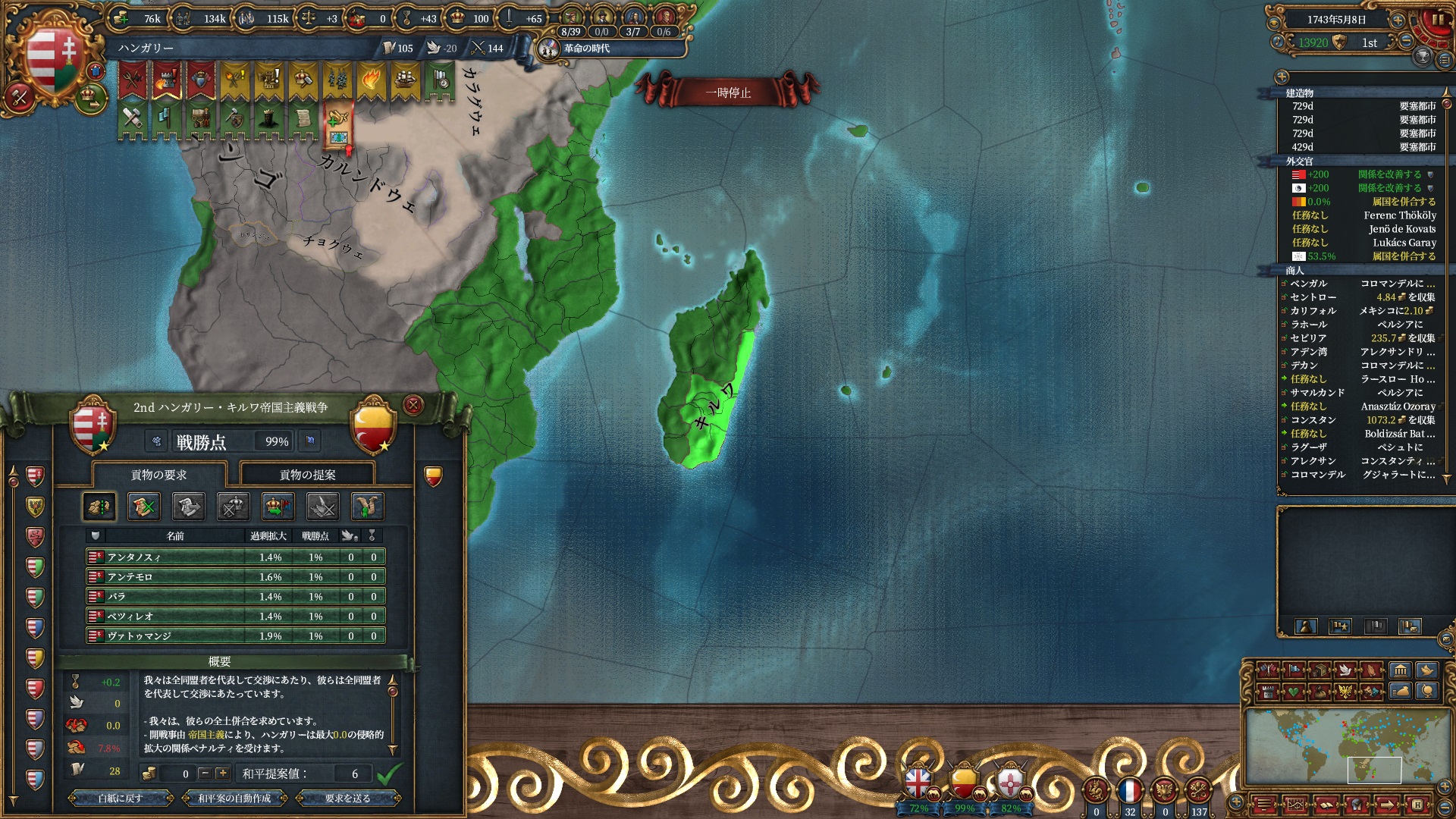 全土併合できそうだったので併合して植民地国家は丸ごとゲット。