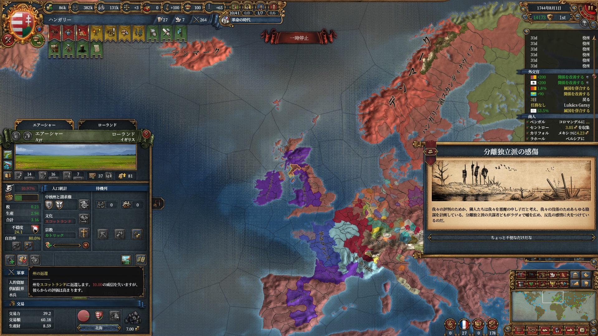 OEへの対処として、アイルランドあたりに1州紫の衛星国に渡して、国土を無理矢理繋げて州を渡しました。