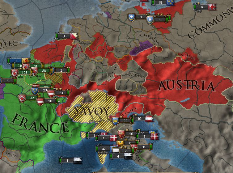 AAR的には、フランス・オーストリア・ポルトガル・スペインの包囲網相手に