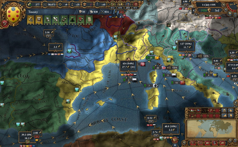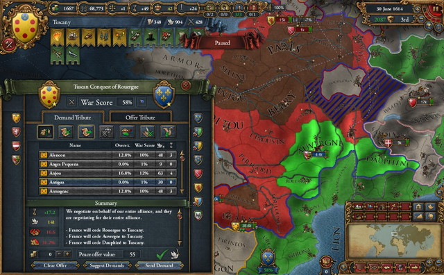 残念なことに停戦期間が切れたので、Provanceと同一文化、旧Aragon領のすべてを譲り受ける。
