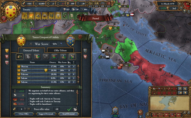 ここばかりは自軍単独でやる他なし。Naplesをシチリア島に海軍で閉じ込めてから北上。