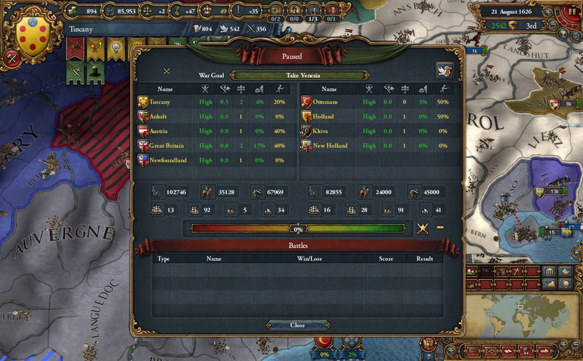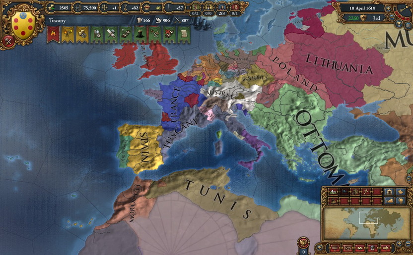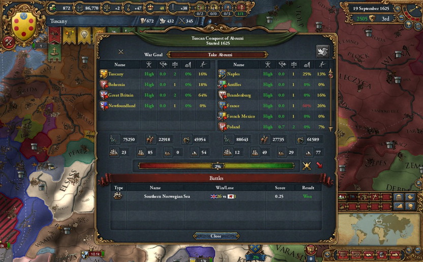 Spain・France・Naplesなどが主柱。戦力比が酷い。