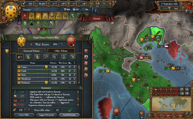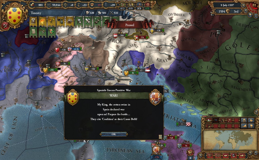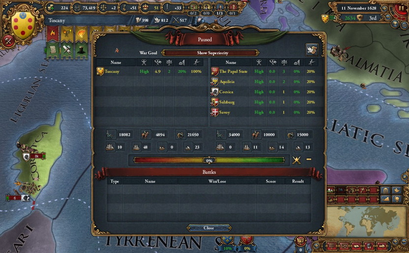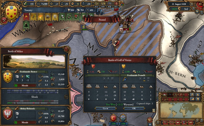 これらの戦闘中のこと。Tuscany軍に違和感を覚える。妙にMoraleが低い。