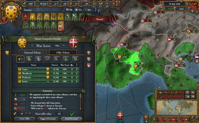 だが今更止まれず。領土の東西一体化を果たすため、France戦で袂を別ったSavoyを攻めます。